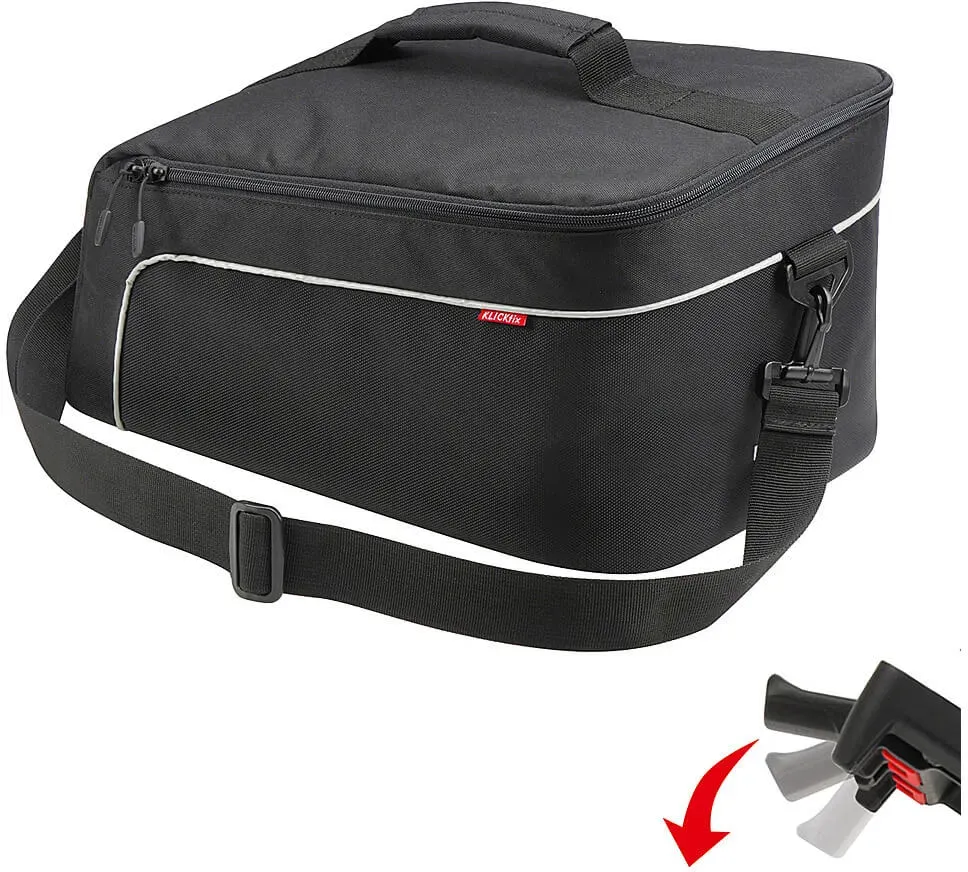 2 Händlerangebote bei billiger.de - Kategorie: Fahrradtaschen - KLICKfix - Große Gepäckträgertasche für jeden Gepäckträgertyp Geräumige Gepäckträgertasche mit großem Hauptfach, das auch den Transport größerer Gegenstände wie Helme, Dokumente und Kleidung ermöglicht. Ausgestattet mit Innentasche, Reflektor, Schultergurt, Regenhaube und Tragegriff.Unsere Taschen, Boxen und Textilkörbe mit UniKlip-Befestigung können auf nahezu allen Gepäckträgern verwendet werden. Einmalig Breite einstellen. Zubehör aufsetzen Hebel umlegen fertig.Ausstattung:- Tragegriff- Schultergurt- Regenhaube- Reflektor- InnenfachSpezifikationen:- Abmessungen (Breite x Länge x Höhe): 28 cm x 36 cm x 20 cm- Gewicht: 840 g- Volumen: 13 l- Maximale Zuladung: 6 kg max. - GTIN:4030572106851 Die KLICKfix Rackpack Light Uniklip 2 Gepäckträgertasche ist eine preiswerte Option für alle, die eine einfache und leichte Transportlösung suchen. ![]() ![]() KLICKfix Rackpack Light Uniklip 2 Gepäckträgertasche schwarz