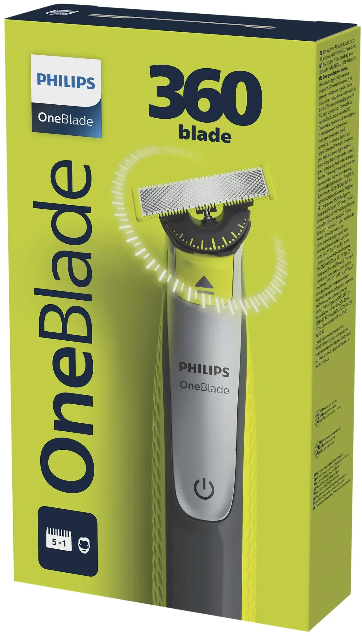 Verfügbarkeit: 3-5 Werktage - Kategorie: Elektrische Rasierer - Philips - GTIN:5905701115785 - PHILIPS ONEBLADE 360 QP2734/20 Rasierer + StänderTrimmen, Formen und Rasieren jeder BartlängeTrimmen, formen und rasieren Sie jede Haarlänge. Einzigartige OneBlade-Technologie mit einer sich schnell bewegenden Klinge, die mit jedem Haar fertig wird.Innovative 360°-KlingeBewegt sich in alle Richtungen und erreicht schwer zugängliche Stellen mit weniger Zügen. Trimmen, stylen und rasieren Sie mühelos jede Haarlänge.Trimmt den Bart, ohne die Haut zu reizenZum Trimmen, Stylen und RasierenPerfekte Anpassung der Klinge an die GesichtskonturenSchneidet, ohne die Haut zu reizen5-in-1-Aufsatz mit einstellbarer TrimmlängeNass/TrockenEinzigartige OneBlade 360-TechnologieDer OneBlade kombiniert eine sich schnell bewegende Klinge (200 Bewegungen pro Sekunde) mit einem doppelten Schutzsystem für eine effiziente und komfortable Rasur von längeren Haaren. Der OneBlade rasiert nicht zu nah an der Haut und ist daher angenehm in der Anwendung.VerwendungHält ca. 4 Monate langNass- und TrockenrasurAkkulaufzeit 60 Minuten - Li-Ion-AkkuAutomatische Spannung:100-240VWiederaufladbarVolle Aufladung in 4 StundenErscheinungsbildFarbe: Grün (lindgrün)Griff: Gerippt, gummiertOneblade 5-in-1-AufsatzPräzises Trimmen des Bartes:1 mm2 mm3 mm4 mm5 mmDrei Optionen für das Trimmen des BartesRasierenTrimmenModellierenPHILIPS ONEBLADE RASIERER STäNDERDer aus Kunststoff gefertigte Ständer sorgt für ... Ein beliebtes Modell für die Pflege von Gesicht und Körper, das mit zwei speziellen Klingen geliefert wird. ![]() ![]() Philips OneBlade Face + Body QP2630/30, mit 2 Klingen (1x Gesicht, 1x Körper) - Grün