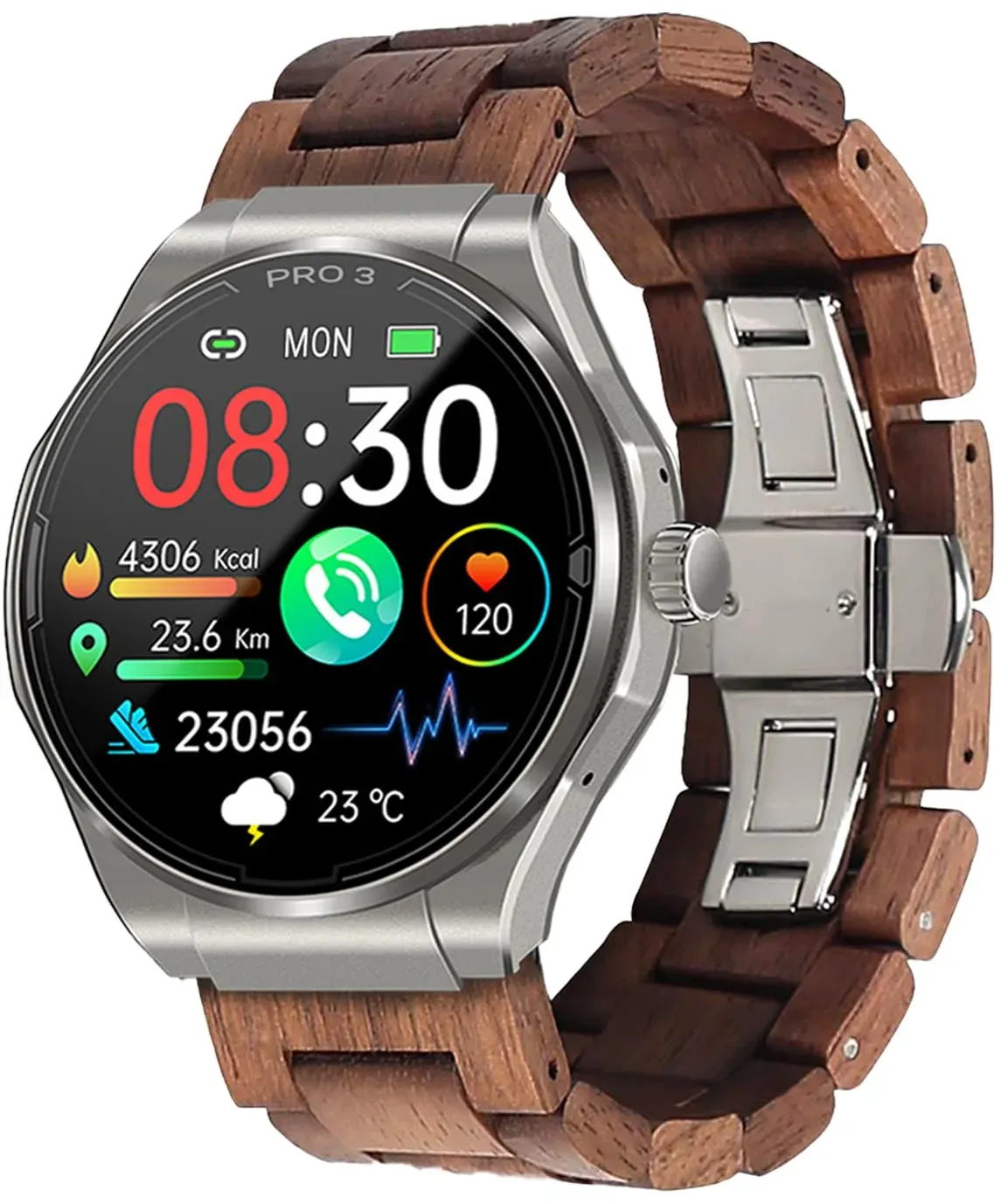 3 Händlerangebote bei billiger.de - Kategorie: Smartwatches - knauermann - Die Knauermann PRO 3 Mini ist mehr als nur eine Uhr €“ sie ist Dein persönlicher Assistent, um Deine Gesundheitswerte jederzeit im Blick zu behalten. Dank der Anlernfunktion optimiert sie die Messungen für Deinen Körper und liefert so präzisere Ergebnisse. Dabei kannst Du alle automatischen Messfunktionen getrennt ein- und ausschalten, ganz nach Deinen Wünschen. Die Knauermann PRO 3 Mini unterstützt Dich umfassend in Deiner Gesundheitsvorsorge. Zu den Herzgesundheitsfunktionen gehört die EKG-Speicherung und Analyse direkt auf der Uhr. Darüber hinaus bietet sie Gesundheitsfunktionen wie eine kalibrierbare Blutdruck-Anzeige, eine 24 Std. Blutsauerstoffsättigung inklusive Schlafapnoe-Alarmierung, Körperfettwaage, Blutbestandteilanalyse, Stress- und HRV-Messung sowie ein Lorenz-Diagramm zur Krankheitsfrüherkennung und Funktionen für den weiblichen Zyklus und wissenschaftliche Schlaffunktionen. Die 24 Std. Pulsüberwachung inklusive Schwellwert-Alarmierung und detaillierte Aufzeichnungen inklusive Qt-Intervall und HRV geben Dir wertvolle Einblicke in Deine Vitaldaten. Die Pulsuhr ist für 148 Sportarten optimiert. Unter der Haube der Knauermann PRO 3 Mini sorgt ein stromsparender Zweikern-Prozessor für eine Akkulaufzeit von bis zu 15 Tagen (in der Praxis sind 4€“8 Tage realistisch, abhängig von der Nutzung). Das Edelstahlgehäuse und die Nanoglas-Rückseite verleihen der Knauermann ... Die Knauermann Pro 3 BT 40 mm mit Echtholzarmband für 189.95 Euro bietet ein einzigartiges und stilvolles Design. ![]() ![]() knauermann Pro 3 BT 40 mm Edelstahlgehäuse silber Echtholzarmband Dunkelbraun M/L