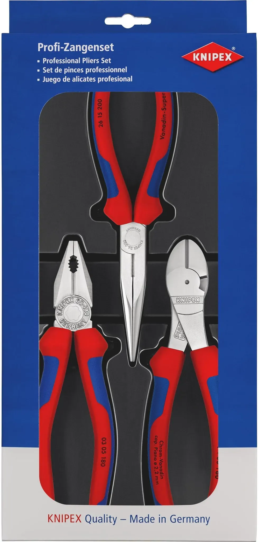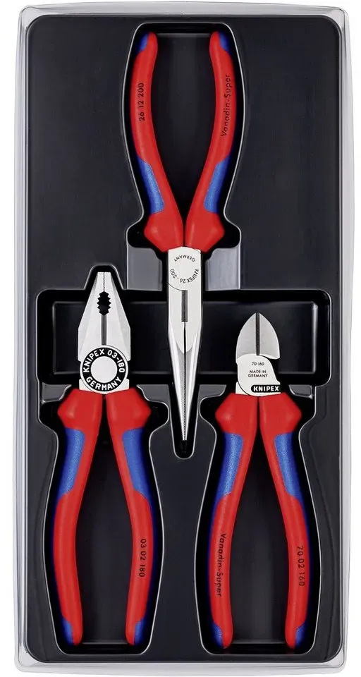 Zustand: Neu - Zangen-Sets - KNIPEX Knipex Tools - Knipex - 00 20 11 #2 - EAN: 0843221010881 - Drei Stück professionelle hochwertige Zange Set mit Comfort Grip Griffe Set beinhaltet 03 02 180 Kombizange 26 12 200 Kette Nase/Needle Nase Seitenschneider Zange 70 02 160 Seitenschneider Seitenschneider - bei Amazon.de Dieses Hochleistungs-Elektrowerkzeug-Set ist ideal für professionelle Anwender, die höchste Qualität und Leistung benötigen. ![]() ![]() Knipex 002011S Hochleistungs-Elektrowerkzeuge, 3 Stück
