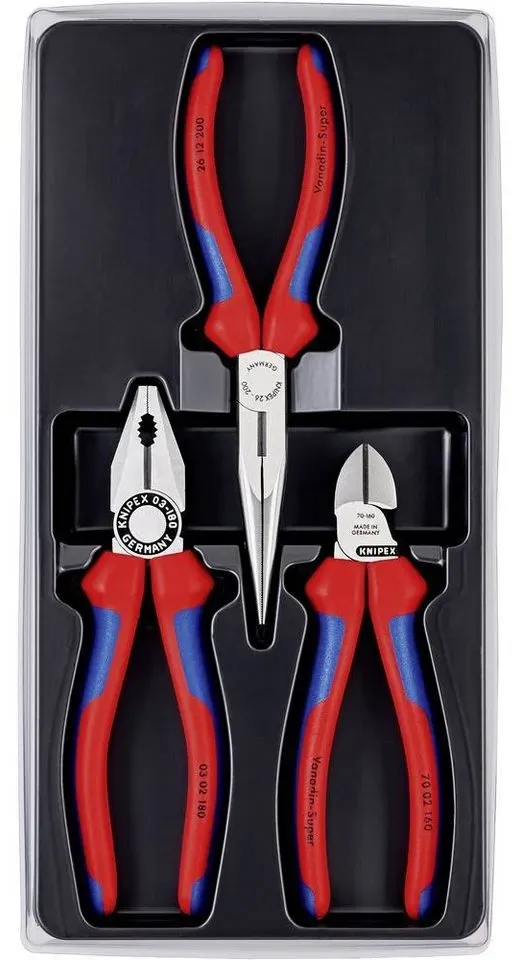 Zustand: Neu - Zangen-Sets - KNIPEX Knipex - Knipex - 00 20 11 - EAN: 4003773012405 - Attraktive Verkaufsverpackung mit SB-Lochung Werkzeuge im Kunststoff-Tiefziehteil mit transparentem Deckel Abmessungen (B x H x T): 170 x 370 x 40 mm - 36 Händler im amazon.de Marketplace Ein solides Zangenset für die Werkstatt, das ein gutes Gleichgewicht zwischen Preis und Qualität bietet. ![]() ![]() Knipex Zangenset Knipex 00 20 11 Werkstatt Zangen-Set 3teilig