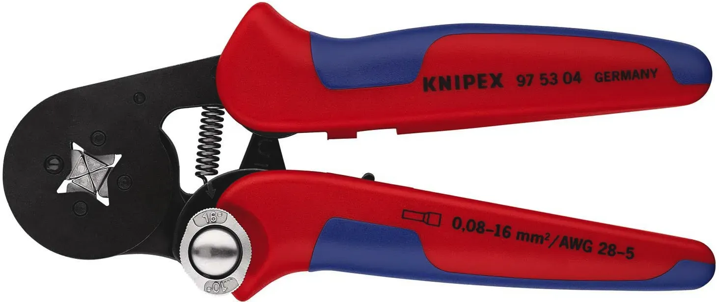 Zustand: Neu - Crimpzangen - KNIPEX Knipex - 97 53 09 SB - EAN: 4003773044758 - Zum Verpressen von Aderendhülsen nach DIN 46228 Teil 1 + 4 Selbsteinstellende Anpassung auf die gewünschte Aderendhülsengröße: keine Crimpfehler durch Verwendung des falschen Crimpeinsatzes Frontale Einführung der Aderendhülsen in das Werkzeug Gleichbleibend hohe Crimpqualität durch Zwangssperre (entriegelbar) Crimpdruck ist werkseitig präzise eingestellt (kalibriert) - bei Amazon.de ![]() ![]() KNIPEX 975304 Selbsteinstellende Crimpzange für Aderendhülsen, mit Seiteneinführung, 0,08 - 10/16 mm