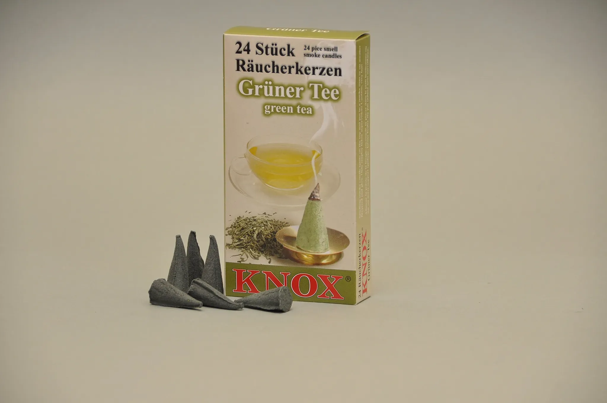 Zustand: Neu - Räucherstäbchen - Knox Sigro - 69 013160 - EAN: 4105640013161 - Diese Packung mit 24 Räucherkegeln wird seit 1865 in Deutschland von der Firma Knox hergestellt Speziell für den Einsatz mit deutschen Rauchen Mann oder Rauchen Häuser entwickelt Bringen Sie ein paar Räucherkegel mit Weihnachtsstimmung in Ihr Zuhause mit diesem 24-er Pack. Jedes Stück ist ca. 3,5 cm hoch und wäre für die meisten mittleren und großen Raucher geeignet. Knox Deutsch Räucherkegel sind leicht parfümiert. - 8 Händler im amazon.de Marketplace ![]() ![]() Knox Räucherkerzen/Räucherkegel - Grüner Tee - 24 Stück/Pkg. Verschiedene Düfte (1, Grüner Tee)