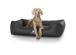 4 Händlerangebote bei billiger.de - Kategorie: Hundebetten - Knuffelwuff - Das Hundebett Madison ist nicht nur angenehm weich, sondern besitzt ein orthopädisches Liegekissen, das die Wirbelsäule des Hundes stabilisiert und zugleich immer wieder in seine Ausgangsform zurückkehrt. Mit luxuriösen 15 cm Höhe ist das Liegekissen für jede Hunderasse, ob groß oder klein, ein angenehmes Kissen zum Reinmümmeln. Die Seitenwände sind mit 25 cm sehr hoch gehalten, was zum einen vor Zugluft schützt, zum anderen das Hundebett noch kuscheliger macht. Das Kunstleder wurde per Laser gesteppt und ist wie das gesamte Hundebett sehr hochwertig verarbeitet. Es kann problemlos gereinigt werden, indem es feucht abgewischt wird. Die Bezüge sind abnehmbar, was ein Reinigen einfacher macht. In 4 Größen und 3 Farben ist das Modell Madison für große und kleine Rassen geeignet, die sich in dem kuscheligen Kunstleder-Hundebett pudelwohl fühlen. Außen-/Innenmaße: M-L 85 x 63cm / 50 x 33cm XL 105 x 75cm / 70 x 50cm XXL 120 x 85cm / 85 x 55cm XXXL 155 x 105cm / 105 x 65cm - GTIN:4260489127148 Dieses XXL-Hundebett in Schwarz bietet ein gutes Preis-Leistungs-Verhältnis und ist dank abnehmbarem Bezug leicht zu reinigen. ![]() ![]() Knuffelwuff Orthopädisches Hundebett Madison aus laser-gestepptem Kunstleder XXL 120 x 85cm Schwarz - abnehmbarer Bezug - leicht zu reinigen - für große, mittelgroße und kleine Hunde