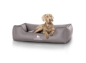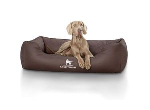 Hundebedarf Lifestyle Tierbedarf - - Das Hundebett Madison ist nicht nur angenehm weich, sondern besitzt ein orthopädisches Liegekissen, das die Wirbelsäule des Hundes stabilisiert und zugleich immer wieder in seine Ausgangsform zurückkehrt. Mit luxuriösen 15 cm Höhe ist das Liegekissen für jede Hunderasse, ob groß oder klein, ein angenehmes Kissen zum Reinmümmeln. Die Seitenwände sind mit 25 cm sehr hoch gehalten, was zum einen vor Zugluft schützt, zum anderen das Hundebett noch kuscheliger macht. Das Kunstleder wurde per Laser gesteppt und ist wie das gesamte Hundebett sehr hochwertig verarbeitet. Es kann problemlos gereinigt werden, indem es feucht abgewischt wird. Die Bezüge sind abnehmbar, was ein Reinigen einfacher macht. In 4 Größen und 3 Farben ist das Modell Madison für große und kleine Rassen geeignet, die sich in dem kuscheligen Kunstleder-Hundebett pudelwohl fühlen. Außen-/Innenmaße: M-L 85 x 63cm / 50 x 33cm XL 105 x 75cm / 70 x 50cm XXL 120 x 85cm / 85 x 55cm XXXL 155 x 105cm / 105 x 65cm - Versandkostenfrei: true - Lieferzeit: 2 Tage - Sofort verfügbar: true - - - bei Fressnapf - gefunden von shopping24 Für groÃ?e Hunde ist dieses XXXL-Hundebett in Braun eine ausgezeichnete Wahl, die orthopädische Unterstützung bietet. ![]() Knuffelwuff Orthopädisches Hundebett Madison aus laser-gestepptem Kunstleder braun XXXL