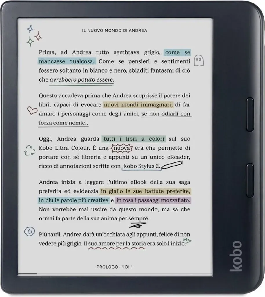 5 Händlerangebote bei billiger.de - Kategorie: E-Book-Reader - KOBO - EU-Stecker.Wir präsentieren unseren bisher inspirierendsten eReader: den neuen Kobo Libra Colour.Verleihen Sie Ihren Rändern Magie, indem Sie Ihre Seiten mit Anmerkungen versehen, Ihre Gedanken ordnen und inspirierende Zeilen hervorheben, alles in Farbe.Mit der Kompatibilität des Kobo Stylus 2 können Sie tiefer in Ihre Lieblingsgeschichten eintauchen, indem Sie bedeutungsvolle Momente markieren und kraftvolle Passagen in den eBooks hervorheben, die Sie lieben.Durchsuchen und lesen Sie eBooks in voller Farbe: - Bringen Sie Farbe in Ihre fiktiven und realen Welten.Erleben Sie Ihr Leseleben in Farbe mit der beruhigenden Farbpalette des 7-Zoll-E Ink KaleidoTM 3 Displays.Buchcover, Illustrationen, Notizen und mehr werden zum Leben erweckt.Keine Blendung im Sonnenlicht, keine Benachrichtigungen - nur Sie und Ihr Buch in farbenfroher Glückseligkeit.Tauchen Sie mit farbenfrohen Markierungen in Ihre Geschichten ein: - Mit der Kompatibilität des Kobo Stylus 2 können Sie Ihre eBooks farbig markieren und hervorheben.Verleihen Sie Ihrer eigenen Lesewelt mehr Tiefe, indem Sie inspirierende Zeilen unterstreichen und Ihren Seiten etwas Persönlichkeit verleihen.Ihr Tagebuch, Ihr Tagesplaner, Ihre Buchclub-Vorbereitung und mehr: - Egal, ob Sie eine Buchclub-Notiz, einen Tagebucheintrag oder einen inspirierten Gedanken festhalten - mit den integrierten Notizbüchern von Kobo und dem Kobo Stylus 2 war es noch nie ... Dieses Angebot ist das günstigste für einen neuen Kobo Libra Colour in Schwarz und bietet ein hervorragendes Preis-Leistungs-Verhältnis. ![]() ![]() KOBO Libra Colour Black