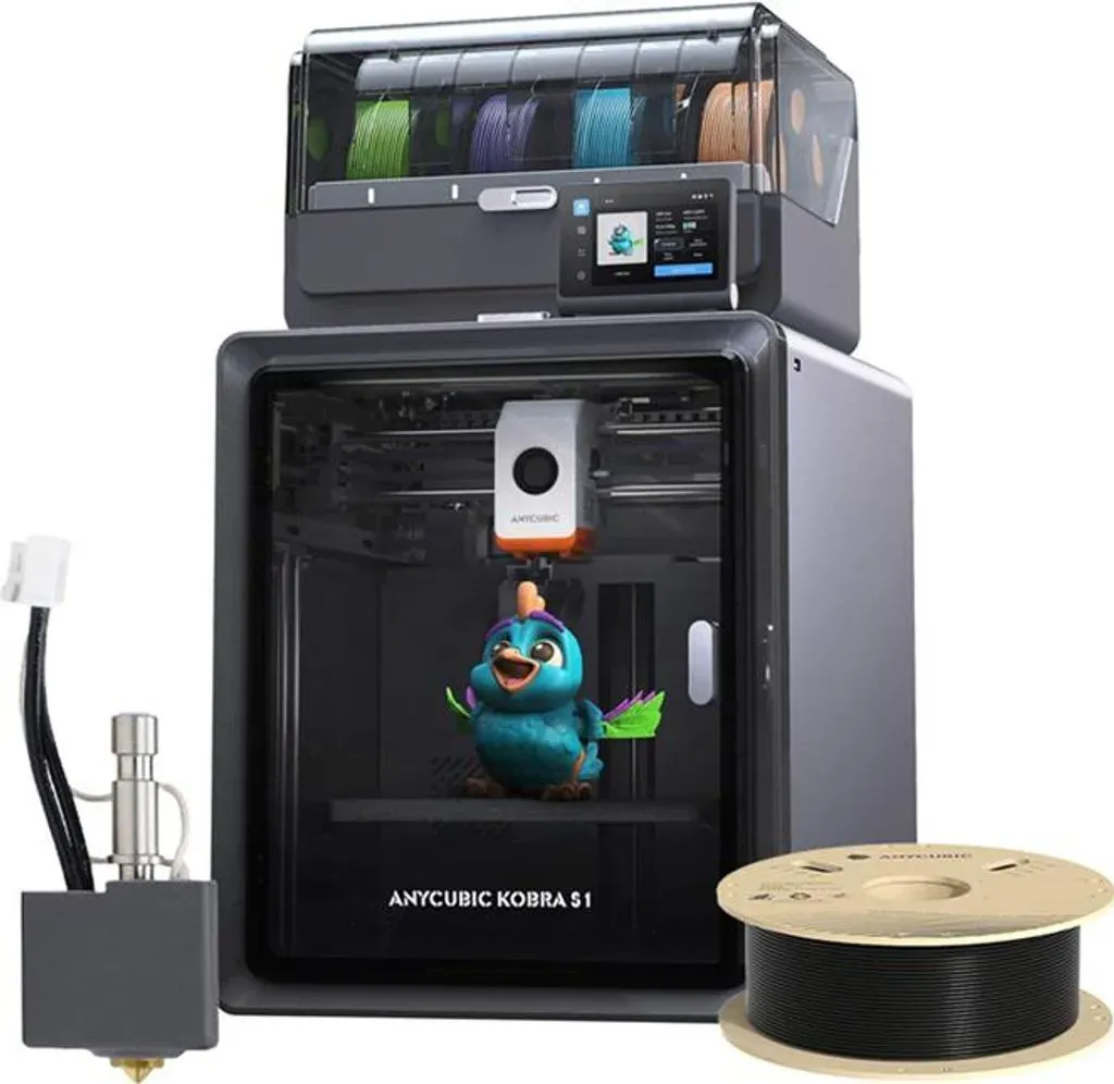 Auf Lager Versand durch AmazonAnycubic Kobra S1 3D-Drucker mit Filament Hub, Geschlossene CoreXY-Struktur, 600 mm/s Schnelles Drucken, 320 °C Hotend mit Abnehmbarer Düse, KI-Überwachung, Optionaler Mehrfarbendruck