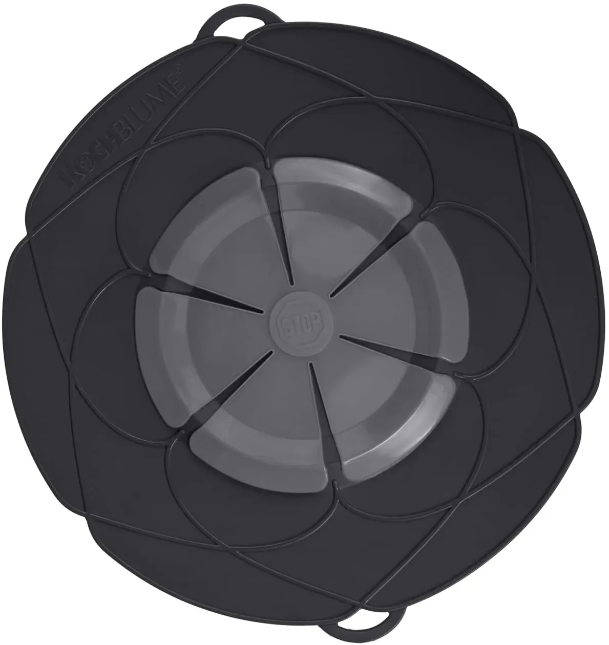 Auf Lager Versand durch AmazonKochblume vom Erfinder Armin Harecker XL 33 cm anthrazit | Überkochschutz für Topfgrößen von Ø 20 bis 28 cm | Set mit Microfasertuch!