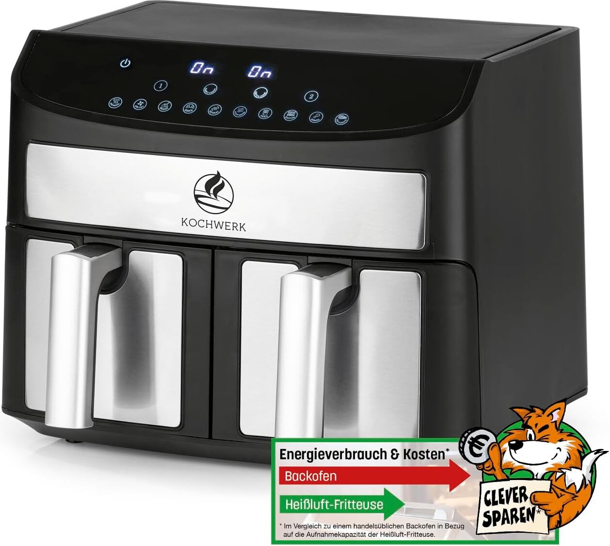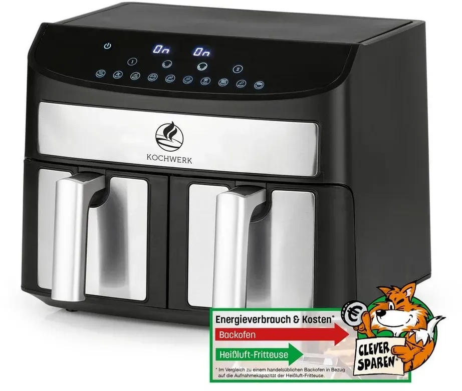 ![]() ![]() KOCHWERK Heißluftfritteuse Doppelkorb Zweikammern 2x 3,5L, 2400 W schwarz|silberfarben