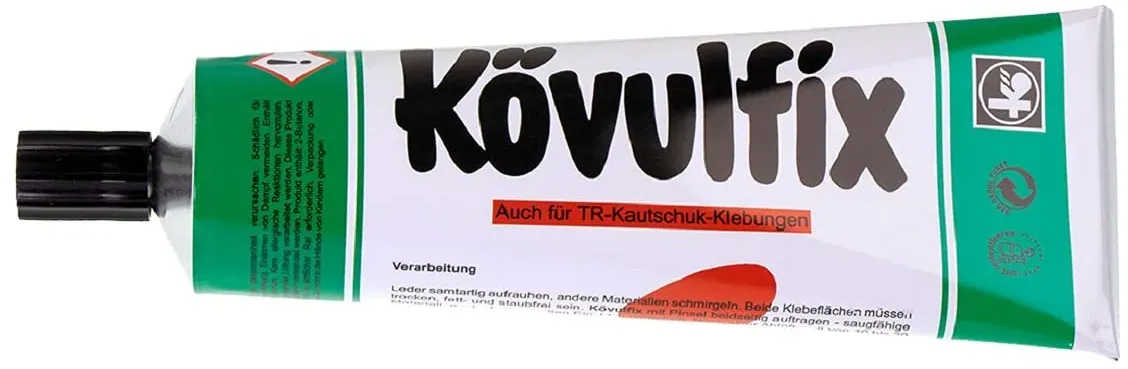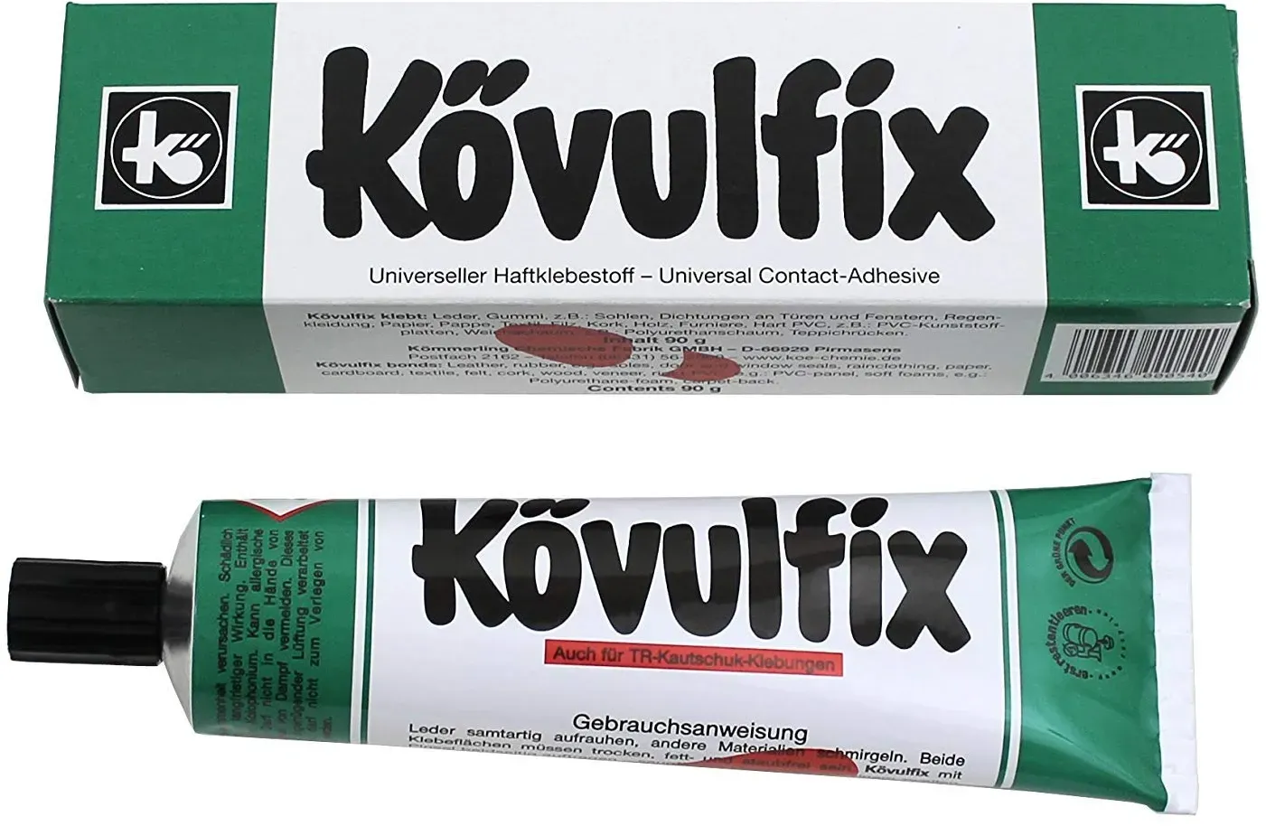 Kategorie: Klebeprodukte - Kömmerling - GTIN:4006346099667 - hochwertiger Alleskleber - hitzebeständig bis 80 C große 90 g Tube Universeller Haftklebestoff der Marke Kövulfix klebt auf: Lede, Gummi, wie Sohlen, Dichtungen, Filz, Holz, PVC, Weichschaum, Teppichrücken usw. 7,77 EUR /100 g - 9,88 Euro bei Amazon Marketplace Home Improvement - gefunden von billiger.de ![]() ![]() Koevulfix Rekord Kontakt Klebeband Kleber 90 g, für alle Zwecke, für Schuhe, Leder, Filz, Kork und Gummi) mehr. Hochwertiges Produkt made in Germany!!!