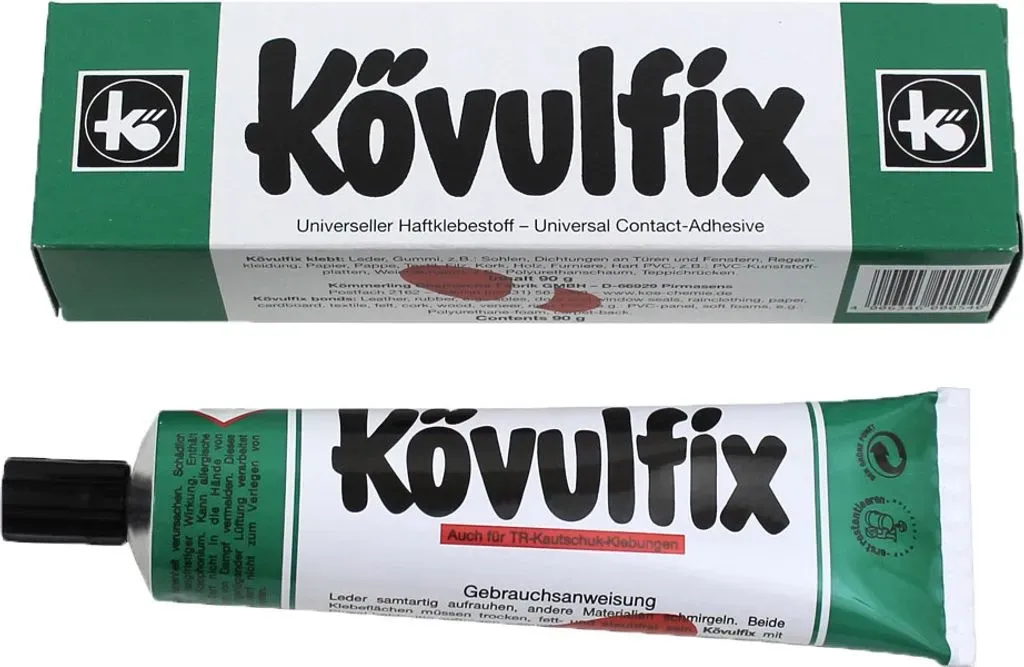 Zustand: Neu - 93,22 € / kg - Kontaktklebstoffe - Kömmerling Kövulfix - Kövulfix 90g 4006346000540 - EAN: 4006346099667 EAN: 4006346000540 - hochwertiger Alleskleber - hitzebeständig bis 80°C große 90 g Tube Universeller Haftklebestoff der Marke Kövulfix klebt auf: Lede, Gummi, wie Sohlen, Dichtungen, Filz, Holz, PVC, Weichschaum, Teppichrücken usw. 7,77 EUR /100 g - 4 Händler im amazon.de Marketplace ![]() ![]() 60g Kövulfix - Klebstoff für eBay die Schuhreparatur 8,45€ 140,83€/1kg
