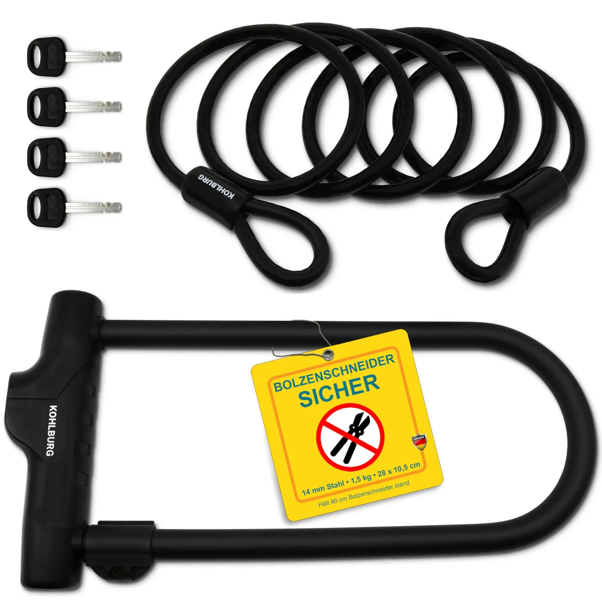Auf Lager Versand durch AmazonKOHLBURG Sicherheits- Bügelschloss höchste Sicherheitsstufe 15/15 mit 170 cm Kabel - sicheres Bügel Schloss groß mit Halterung für E-Bike & Fahrrad - Fahrradschloss hohe Sicherheit - U Lock Bike