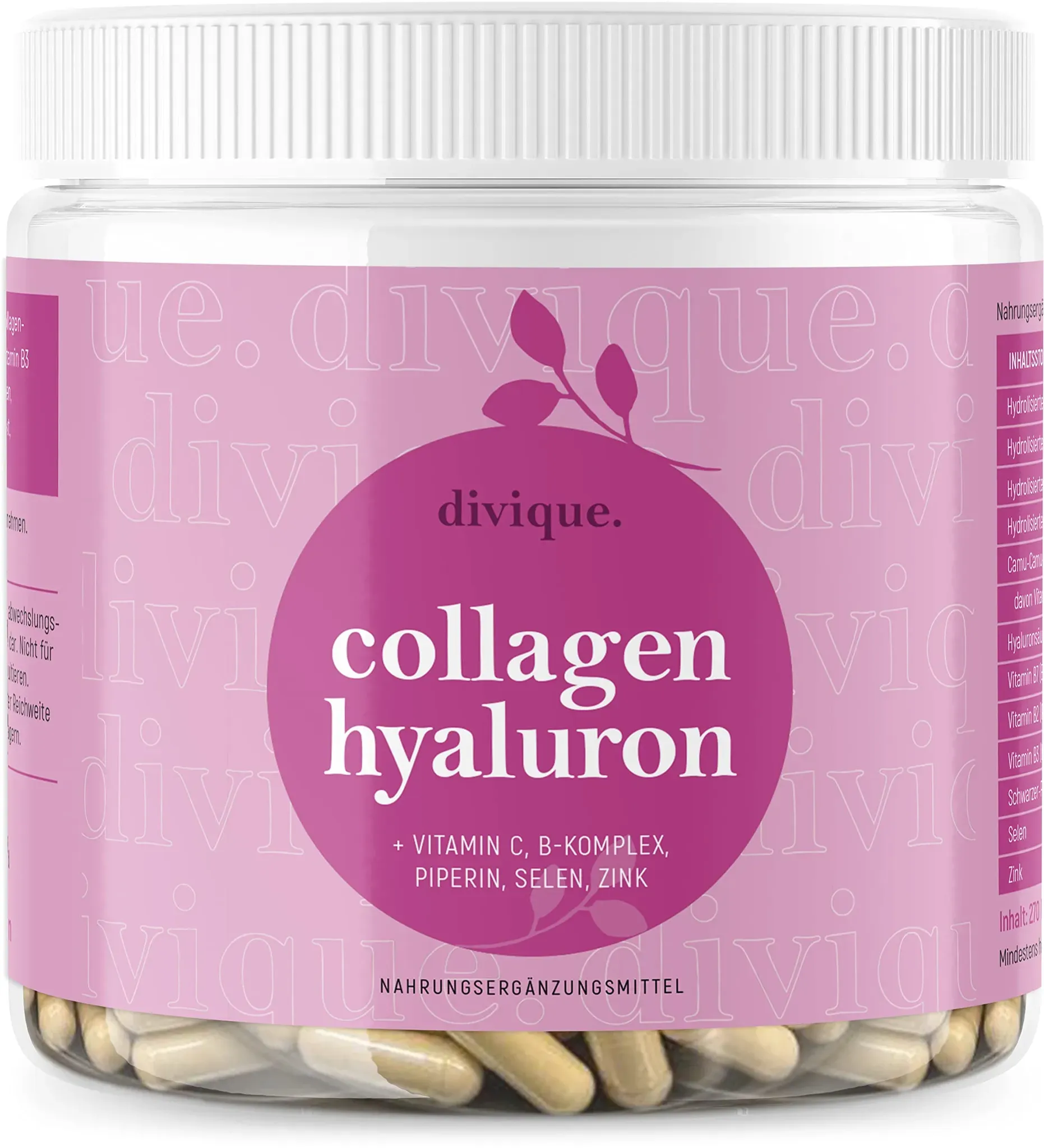 Kategorie: Nahrungsergänzungsmittel - Divique - GTIN:8588009041023 - KOLLAGEN TYP I, II, III, IV, X Divique Collagen Kapseln enthalten hochwertiges Collagen der 5 wichtigsten Typen Kollagen Typ I, II, III, IV, X diese werden im Körper auf verschiedenen Stellen benötigt u.a. in der Haut, den Haaren, Nägel und Knochen sowie in Gelenken, Knochen und Knorpeln. Divique ist einzigartig in der Zusammensetzung der verschiedenen Kollagen-Typen. HOCHREINE HYALURONSäURE Hyaluronsäure ist dank seiner wasserbindenden, glättenden und schmierenden Wirkung optimale Ergänzung zum Kollagen. Diese zwei Hauptteile dieser Kapseln wirken synergetisch. Divique Collagen Hyaluronat enthält Hyaluronsäure der höchsten Reinheitsstufe für optimale Ergebnisse. UNIKATE BEAUTY-FORMEL Divique hat diese Beauty Kapseln mit anderen wichtigen Inhaltsstoffen ergänzt, die Ihre natürliche Schönheit strahlen lassen. Enthalten ist neben Kollagen und Hyaluronat auch Selen, Zink, Vitamin C aus Camu Camu, Vitamin-B-Komplex und Schwarzer-Pfeffer-Extrakt. OHNE UNERWüNSCHTE ZUSATZSTOFFE Divique Collagen Hyaluron enthält keine unerwünschten Zusatzstoffe. Außer den genannten Wirkstoffen befinden sich in unserem Produkt nur Reis-Extrakt als Träger und Kapselhülle aus Gelatine. Sie können sich auf die Reinheit unserer Produkte verlassen. - 24,99 Euro bei Amazon Marketplace Health & Personal Care - gefunden von billiger.de Dieses Kollagenpulver bietet eine umfassende Formel mit MSM, Glucosamin HCL, Hyaluronsäure und Weihrauch Extrakt, zusätzlich zu bioaktiven Kollagenpeptiden der Typen 1, 2 und 3, und ist in einem ansprechenden Cola-Geschmack erhältlich. ![]() ![]() Vit4ever Collagen Plus - 500 g Pulver mit MSM, Glucosamin HCL, Hyaluronsäure, Weihrauch Extrakt - 100% bioaktives Kollagen Hydrolysat Peptide - Kollagen Typ 1, 2 & 3 - Cola Geschmack