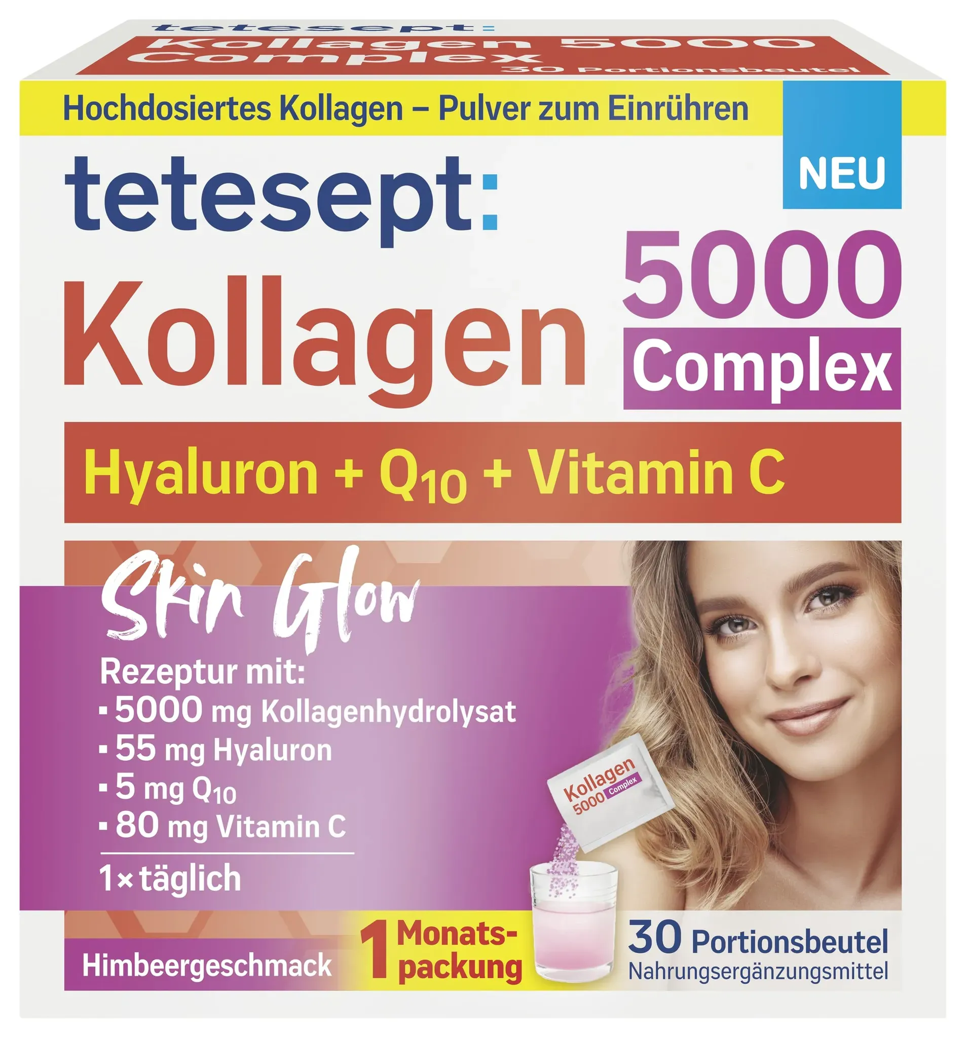 Verfügbarkeit: Auf Lager - Kategorie: Nahrungsergänzungsmittel - Merz - GTIN:4008491111478 - Zur Unterstützung der Haut: Der wertvolle Beauty-Kollagen-Komplex kombiniert Kollagenhydrolysat mit Hyaluron, Q10 und Vitamin C. Hochdosiertes Kollagen: Kollagen ist das wichtigste Strukturprotein der Haut und des Bindegewebes. Diese Strukturen sind für Festigkeit und Spannkraft verantwortlich. Wertvolle Inhaltsstoffe: Vitamin C, Niacin und Biotin unterstützen die normale Hautfunktion. Kupfer trägt zur normalen Hautpigmentierung bei. Mangan trägt zu einer normalen Bindegewebsbildung bei. Pulver zum Einrühren: 1x täglich den Inhalt eines Portionsbeutels in Flüssigkeit auflösen und einnehmen. Das Kollagenpulver mit leckerem Himbeergeschmack ist laktose- und glutenfrei. Lieferumfang: tetesept Kollagen 5000 Complex (1 x 30 Portionsbeutel), Nahrungsergänzungsmittel mit Kollagen, Vitaminen und Mineralstoffen, trägt zur Unterstützung der Haut von innen bei. - 22,99 Euro bei Amazon Marketplace Health & Personal Care - gefunden von billiger.de Dieses 1000g Kollagen Peptide Bioaktives Premium Collagen Hydrolysat Pulver bietet eine große Menge zu einem sehr guten Preis. ![]() ![]() 1000g Kollagen - Peptide Bioaktives eBay Premium Collagen Hydrolysat Peptide Pulver