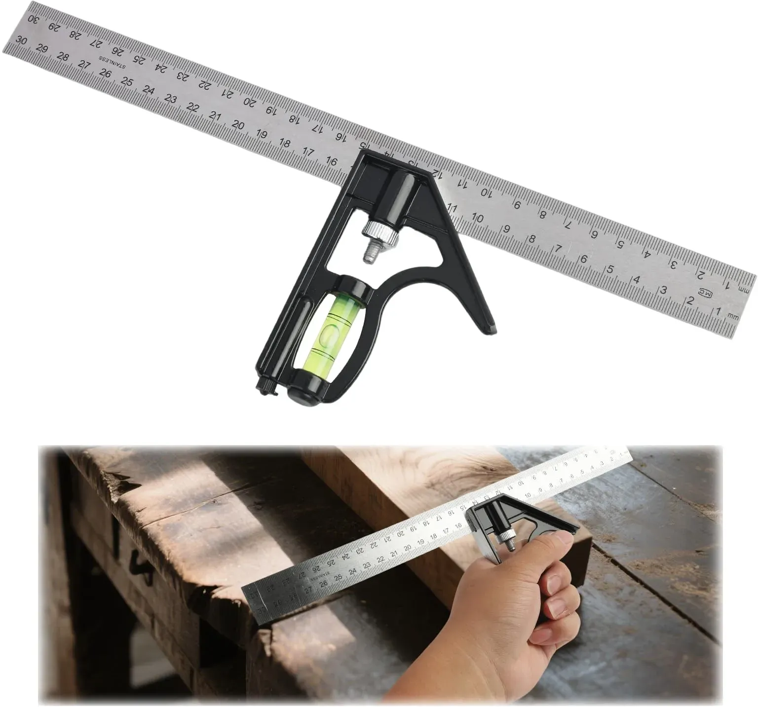 Kategorie: Messwerkzeuge - banjiabb - [Multifunktions-Winkellineal] Mit Dem Kombinationswinkel 300 Mm Können Sie Füllstände Schnell Und Genau Messen Sowie 90-Grad-Winkel Und 45-Grad-Gehrungswinkel Präzise Bestimmen. Es Kann Als Winkelmesser, Tiefenmesser, Anreißer Und Wasserwaage Verwendet Werden, Um Unterschiedlichen Anforderungen Gerecht Zu Werden. Um Einen 90-Grad-Winkel Zu Gewährleisten, Sollte Ein Teil Des Lineals Auf Der 45-Grad-Seite Bleiben [Hochwertiges Material] Kombiwinkel Ist Aus Hochwertigem Edelstahl Gefertigt. Diese Materialien Sind Korrosionsbeständig, Rostfrei Und Sehr Robust, Sodass Die Werkzeuge äußerst Sturz- Und Abriebfest Sind. Die Bruchsichere Elektrophoretische Beschichtung Stellt Sicher, Dass Das Lineal Auch In Den Anspruchsvollsten Umgebungen Zuverlässig Funktioniert [Hohe Präzision] Die Winkelschmiege Verfügt über Doppelseitige Skalen In Metrischen Und Imperialen Größen, Die Mithilfe Der Lasertechnologie Präzise Eingraviert Sind, Um Höchste Genauigkeit Und Hervorragende Lesbarkeit Zu Gewährleisten. Mithilfe Der Laserskala Lässt Sich Das Lineal Präzise Positionieren Und Durch Die Eckwinkel Liegt Es Bündig Am Holz An. Dank Der Beidseitigen Doppelgravur Ist Das Messen In Jede Richtung Und An Jeder Position Möglich [Effizientes Design] Das Streichmaß Verfügt über Ein Ergonomisches Design, Um Den Druck Auf Ihre Ellbogen Und Handgelenke Beim Messen Und Markieren Zu Verringern. Der Griff Liegt Gut In Der Hand Und Lässt Sich Leicht Bedienen. Zum ... Dieser vidsmow Kombinationswinkel ist mit integrierter Wasserwaage und Anreißnadel ein vielseitiges Werkzeug zum sehr günstigen Preis. ![]() ![]() vidsmow Kombinationswinkel 300mm, Präzisionswinkel mit Wasserwaage und Anreißnadel, Winkelwasserwaage aus Edelstahl, Tischlerwinkel & Schreinerwinkel für 45 /90 Messung, Zinklegierungsgriff, metrisch/zöllig