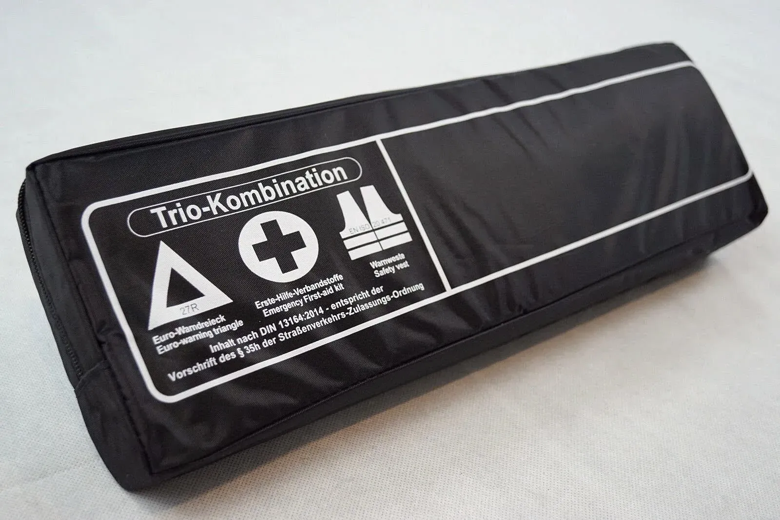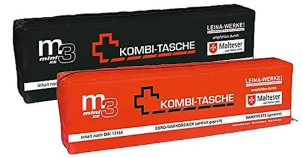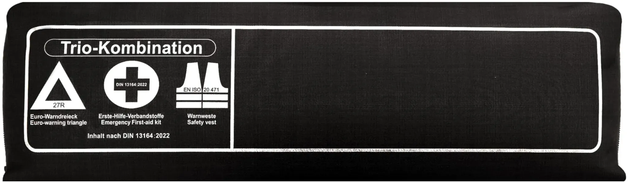 Verfügbarkeit: Auf Lager - Kategorie: Erste Hilfe - Heldenwerk - GTIN:4260492720497 - EUROPAWEIT NUTZBAR €“ Das 3 in 1 Erste-Hilfe-Set erfüllt die aktuellsten Normen 2026 und ist für den gesamten EU Straßenverkehr zugelassen. Damit fahren Sie flexibel und sorgenfrei Auto! SICHERHEIT & SCHUTZ €“ Dank des Verbandmaterials inkl. 2x Gesichtsmasken und hochreflektierender Warnweste ist das Pannenhilfe-Set vielseitig. Das Warndreieck ist ECE-konform und in einer separaten Kunststoffbox verpackt. BUßGELDER VERMEIDEN €“ Ein Verbandskasten mit Norm ist nach §35h StVZO Pflicht. Dank neuester Vorschrift 2026 kommen Sie mit dem Autoverbandskasten durch jede Kontrolle & Panne in der gesamten EU. BESTENS GESCHüTZT - Die Inhalte der robusten Verbandtasche sind staubgeschützt und steril verpackt. Die konsequenten Qualitätskontrollen machen Ihre Autoapotheke zu einem 100% zuverlässigen Wegbegleiter. PRAKTISCHE KLETTSTREIFEN €“ Das Erstehilfe Kit besitzt 2 praktische Klettstreifen zur Befestigung im Auto. Dank separater Kammer für das Warndreieck herrscht auch im Notfall immer Ordnung - 15,99 Euro bei Amazon Marketplace Health & Personal Care - gefunden von billiger.de Dieses schwarze Trio-Set ist mit 16,90 Euro ein gutes Angebot mit der neuen DIN13164:2022 Norm. ![]() ![]() SCHWARZ TRIO 3in1 Verbandtasche NEUE DIN13164:2022 Warnweste Warndreieck Verbandskasten Kombitasche