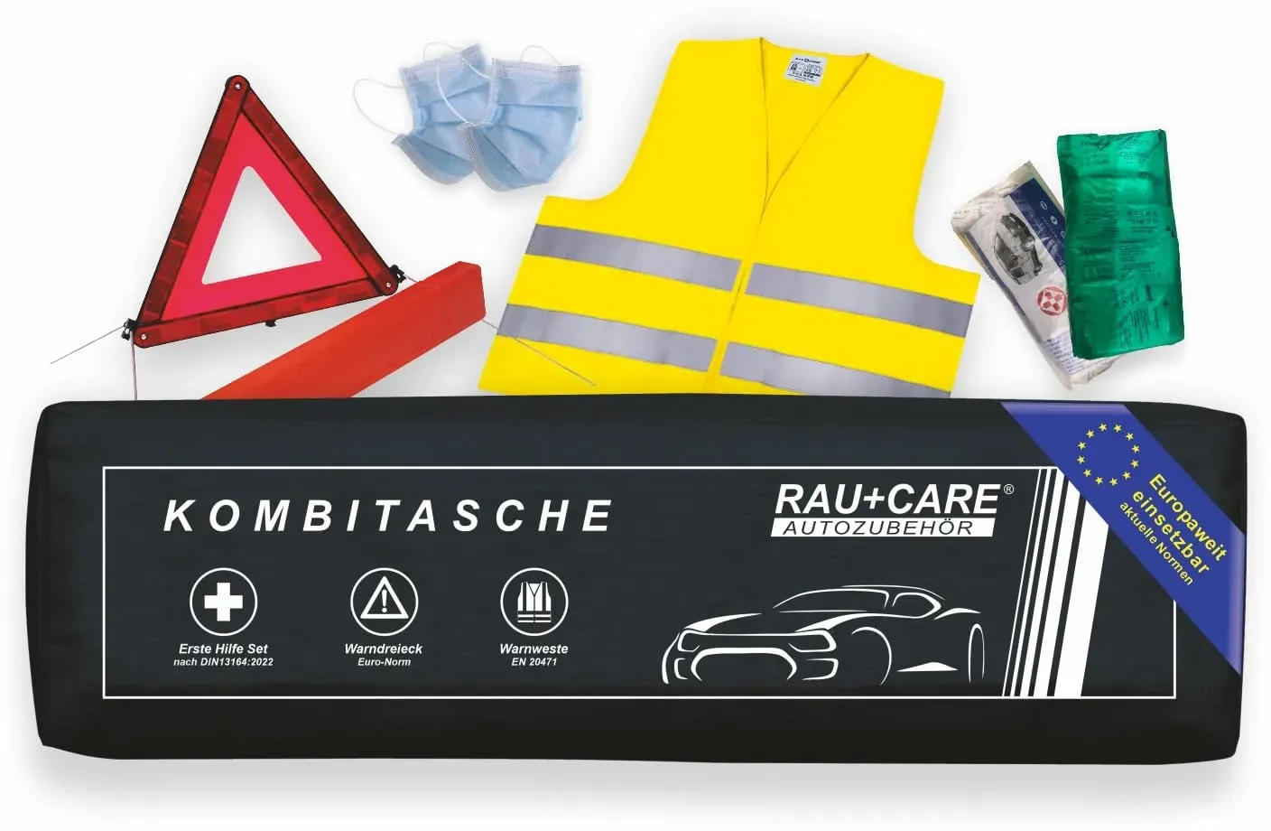 Verfügbarkeit: Auf Lager - Kategorie: Erste Hilfe - SCHWARZ TRIO 3in1 Verbandtasche NEUE DIN13164:2022 Warnweste Warndreieck Verbandskasten Kombitasche - 16,90 Euro bei Amazon Marketplace Health & Personal Care - gefunden von billiger.de Dieses Rau Kfz Kombitasche ist mit 16,95 Euro preiswert und nach aktueller 2026 Norm geprüft, was eine hohe Sicherheit und Konformität gewährleistet. ![]() ![]() rau + care auto - zubehör Rau Kfz Kombitasche schwarz 3 in 1 - aktuelle 2026 Norm - geprüft €“ inklusive Warndreieck, Warnweste €“ Verbandtasche Auto DIN 13164:2022 - alles StVO konform - Europaweit gültig