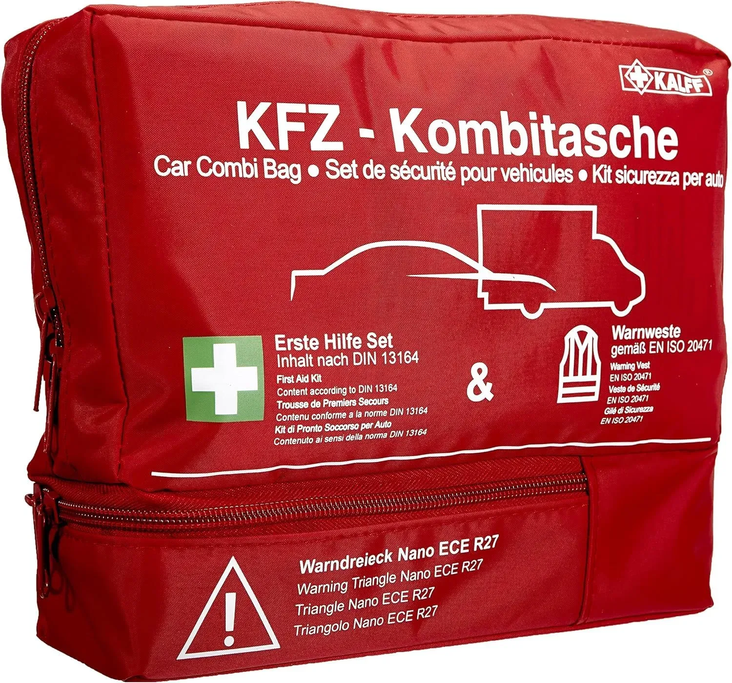 Auf Lager Versand durch AmazonKFZ Kombitasche (3 in 1) nach aktueller Norm 2026 - Inkl. Warndreieck, Warnweste - Verbandskasten Warndreieck Set Verbandskasten Auto DIN 13164:2022 (StVO konform)