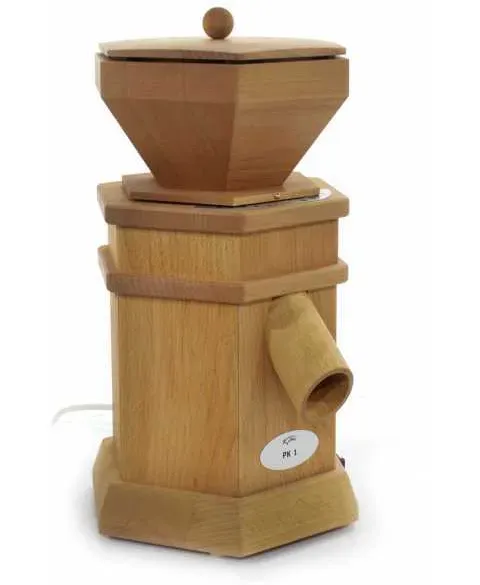 Kategorie: Getreidemühlen - Komo - GTIN:9120043060135 - KoMo PK 1 Unser Prachtstück mit Ecken & Kanten Seit 1992 ist die PK 1 auf Erfolgskurs ein Klassiker mit Charakter. Mit kraftvollem 360-Watt-Industriemotor, langlebigen Korund-Keramik-Mahlsteinen und einer soliden Verarbeitung aus massivem Buchenholz ist diese Getreidemühle für anspruchsvolle Haushalte mit bis zu 5 Personen gemacht. Egal ob Weich- oder Hartgetreide, Hülsenfrüchte oder Kaffeebohnen die PK 1 verarbeitet deine Zutaten zuverlässig zu feinem Mehl. Einfach per Dreh am Trichter die gewünschte Mahlstufe einstellen und loslegen. Und wie bei allen KoMo-Mühlen gilt: Werkzeugfreies öffnen des Mahlwerks inklusive. Die Highlights auf einen Blick: Leistung: 360 Watt Industriemotor Mahlleistung: ca. 100 g Weizen pro Minute (fein), mehr bei gröberer Einstellung Trichterfüllmenge: ca. 1000 g Weizen Mahlwerk: Korund/Keramik, stufenlos einstellbar Feinheit: 0,3 mm ( 90 % nach Luftstrahlsiebmethode) Lautstärke: ca. 70 dB bei Dinkel fein Material: Buche massiv, geölt Gehäusemaße: 37,5 x 21 x 23,2 cm Gewicht: ca. 8 kg Unterstellhöhe für Schüssel: ca. 10,3 cm Kabellänge: 1,5 m Lieferumfang: Mühle mit Deckel (Schüssel nicht enthalten) Optional auch mit Wechselmahlwerk erhältlich für Gewürze, Kaffee oder glutenfreies Mahlgut. So wandelst du deine PK 1 flexibel um, ohne Geschmacksübertragung auf andere Zutaten. Geeignet für folgende Zutaten: Weichgetreide: Weizen, Dinkel, Roggen, Kamut, Emmer, Einkorn, Gerste, Grünkern, Hafer ... ![]() ![]() Komo PK 1
