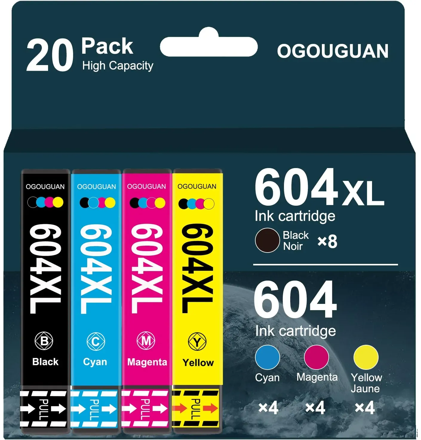 Kategorie: Druckerpatronen - Ink E-Sale - Lieferumfang: 10er-Pack 604XL Tintenpatronen (nicht original), kompatibel für Epson 604XL; Bitte beachten Sie, dass die Verpackung und die Aufkleber variieren können Hohe Seitenleistung: 4 x 604XL BK(je 11ml, 500 Seiten), 2 x 604XL C(je 9ml, 350 Seiten), 2 x 604XL M(je 9ml, 350 Seiten), 2 x 604XL Y(je 9ml, 350 Seiten); Die Seitenleistung basiert auf einer Deckung von 5 % auf A4-Papier und kann je nach tatsächlicher Nutzung variieren Kompatible Drucker(Expression Home-Serie): XP-2200 XP-2205 XP-3200 XP-3205 XP-4200 XP-4205 Kompatible Drucker(WorkForce-Serie): WF-2910DWF WF-2930DWF WF-2935DWF WF-2950DWF Tolle Druckleistung: Mit Tinte in Premium-Qualität bieten unsere 604XL Patronen professionelle, gestochen scharfe Ergebnisse für Ihre Drucke - 18,99 Euro bei Amazon Marketplace CE - gefunden von billiger.de Dieses umfangreiche 20er-Pack für 32.99 Euro ist ideal für Nutzer mit sehr hohem Druckaufkommen, die langfristig sparen möchten. ![]() ![]() OGOUGUAN 604XL Kompatible Tintenpatronen für Epson 604 XL für Expression Home XP-2200 XP-2205 XP-3200 XP-3205 XP-4200 XP-4205 Workforce WF-2910 WF-2930 WF-2935 WF-2950 (20 Stück)