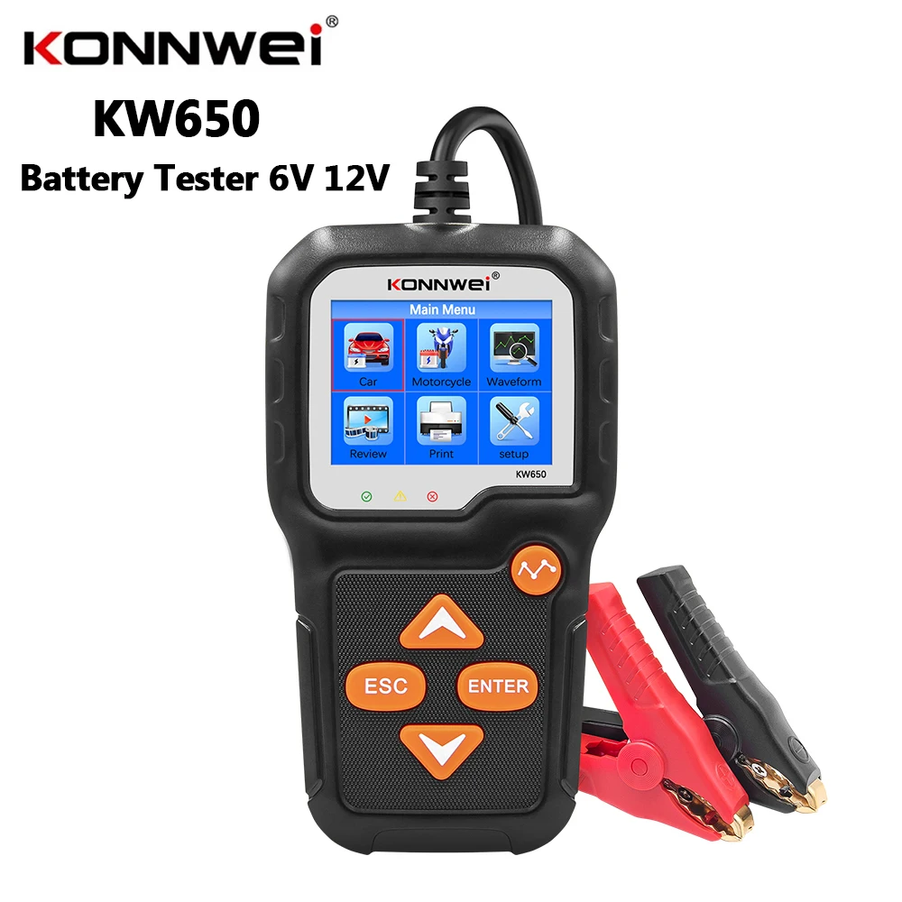 KONNWEI - KONNWEI KW650 Auto Motorrad Batterie Tester 6 V 12 V Auto Batterie Analysator 100 bis 2000 CCA Auto Moto Ankurbeln lade Test Werkzeuge - bei de.aliexpress.com - aus Yadore Produktdaten ![]() KONNWEI KW650 12V 6V Auto Motorrad Batterie Tester Batterie Analysator 2000CCA Lade Anlassen System Schnell Test Werkzeug