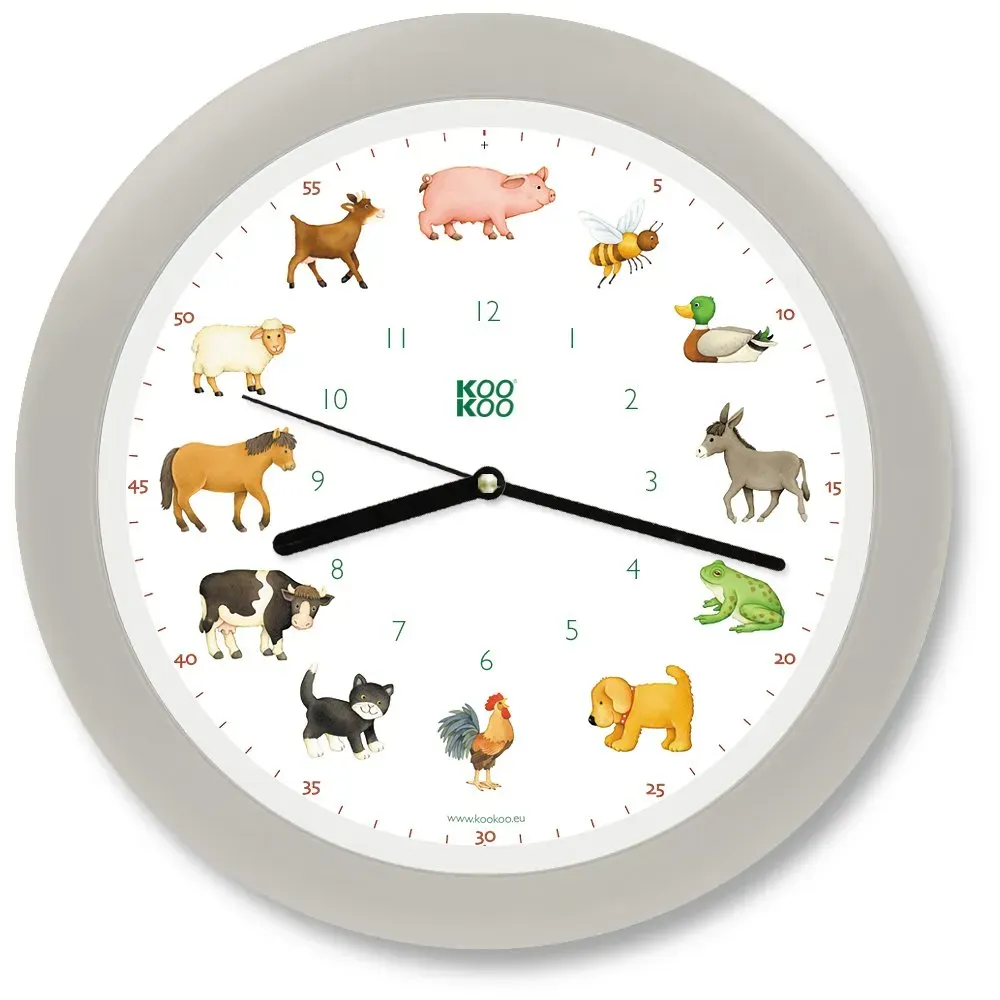 Auf Lager Versand durch AmazonKOOKOO KidsWorld Holz, Bauernhofuhr mit 12 echten Tierstimmen vom Land