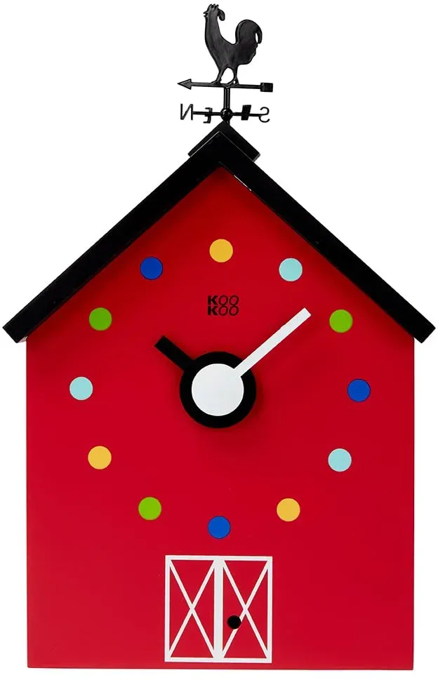 Verfügbarkeit: Auf Lager - Kategorie: Wecker - Kookoo - GTIN:4260019361196 - Witziges Design: Bauernhaus-Uhr mit Wetterhahn, dekorativ und klar gestaltet. Wand- oder Standuhr für Kinder und Erwachsene. By Maia Ming Designs. Zu jeder vollen Stunde dreht sich der Wetterhahn und Sie hören eins von 12 Bauernhoftieren: ein wieherndes Pferd, einen bellenden Hund, ein lustig grunzendes Schwein und viele weitere Tiergeräusche. Wie eine Kuckucksuhr: Sie können auch nur den Hahn einstellen, der sich entsprechend der Uhrzeit ein bis 12-mal meldet. Echte Aufnahmen aus der Natur. Die Lautstärke ist stufenlos einstellbar. Ein Lichtsensor sorgt ab Einbruch der Dunkelheit für Ruhe. Größen (B x H x T): Small: 120 x 160 x 76 mm, Large: 174 x 230 x 90 mm, Material MDF, Batterien: 3x AA nicht im Lieferumfang - 90,93 Euro bei Amazon Marketplace Home - gefunden von billiger.de Diese Singvögel-Uhr mit Funkwerk in Holzoptik kombiniert klassisches Design mit moderner Technik und natürlichen Vogelstimmen. ![]() ![]() KOOKOO Wanduhr - Singvögel Funk eBay Holz SV1000RCW NEU in OVP