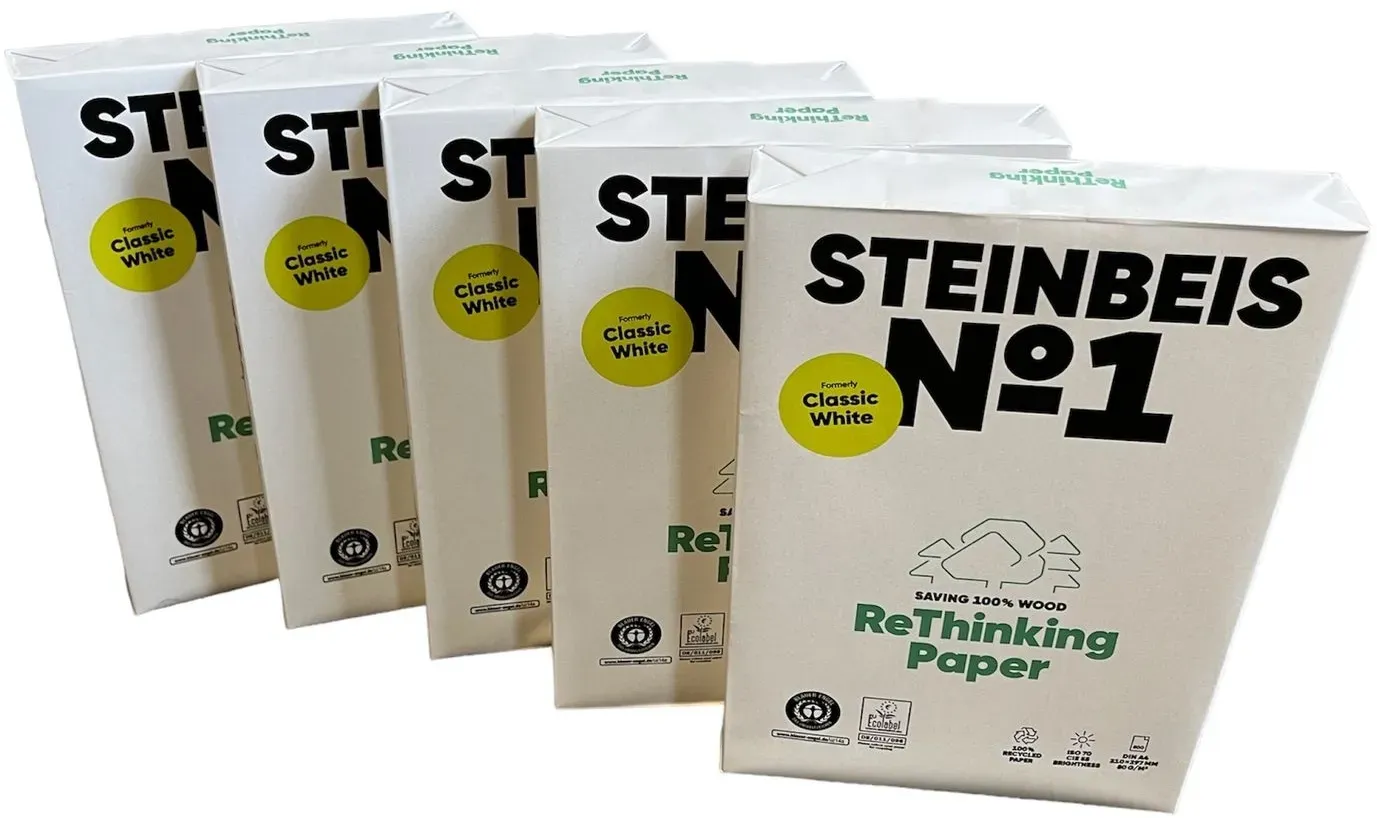 7 Händlerangebote bei billiger.de - Kategorie: Papier - Steinbeis - Steinbeis No 1 (Classic White) 2500 Blatt Steinbeis No 1 ist ein nachhaltiges Büropapier aus 100%Altpapier. Es ist geeignet für den täglichen Einsatz auf allen Büromaschinenund besticht durch sehr gute Laufeigenschaft en sowiegute Druckergebnisse. 2500 Blatt - DIN-A4 - 80g/m2100% Recyclingpapier mit 70er Weiße nach DIN ISO 2470Ausgezeichnet mit dem blauen UmweltengelBeidseitige Bedruckbarkeit dank hoher OpazitätOptimale Archivierbarkeit für mehrere 10 Produktinformation: Dieses Recyclingpapier wird ohne umweltschädliche Bleichmittel hergestellt. Es kann nach dem Gebrauch recycelt werden.Format A41 Packung: 500 BlattVerkaufseinheit: 1 Karton (5 Packungen 500 Blatt)Gewicht: 80g/m2Weißegrad: 55 CIEDurchsichtigkeit: 95%Farbe: cremefarbenHelligkeit: 70 Kopierpapier A4 500 Blatt für Kopierer, Laserdrucker und FaxgeräteEssenzieller Bürobedarf - DIN A4 öko-Universalpapier für alle Kopierer und Faxgeräte. Ermöglicht staufreies Drucken auf Inkjet- oder Laserdruckern.Beideseitig Bedruckbar - Beidseitiges Drucken in s/w und Farbe. Hochwertiges Umweltpapier aus Altpapier für Anwendende mit hohem Druckvolumen.Hohe Alterungsbeständigkeit Das Büro-Papier wurde nach DIN 6738, LDK 24-85 und ISO 20494 geprüft geeignet für dauerhafte Archivierung.Nachhaltig Mit Steinbeis sparen Sie 100 % Holz, 73 % Energie, 79 % Wasser und 42 % CO2. Ausgezeichnet mit dem blauen Engel und EU Ecolabel.Hochwertige Mehrzweck-Papiere Unsere Papiere ... ![]() ![]()