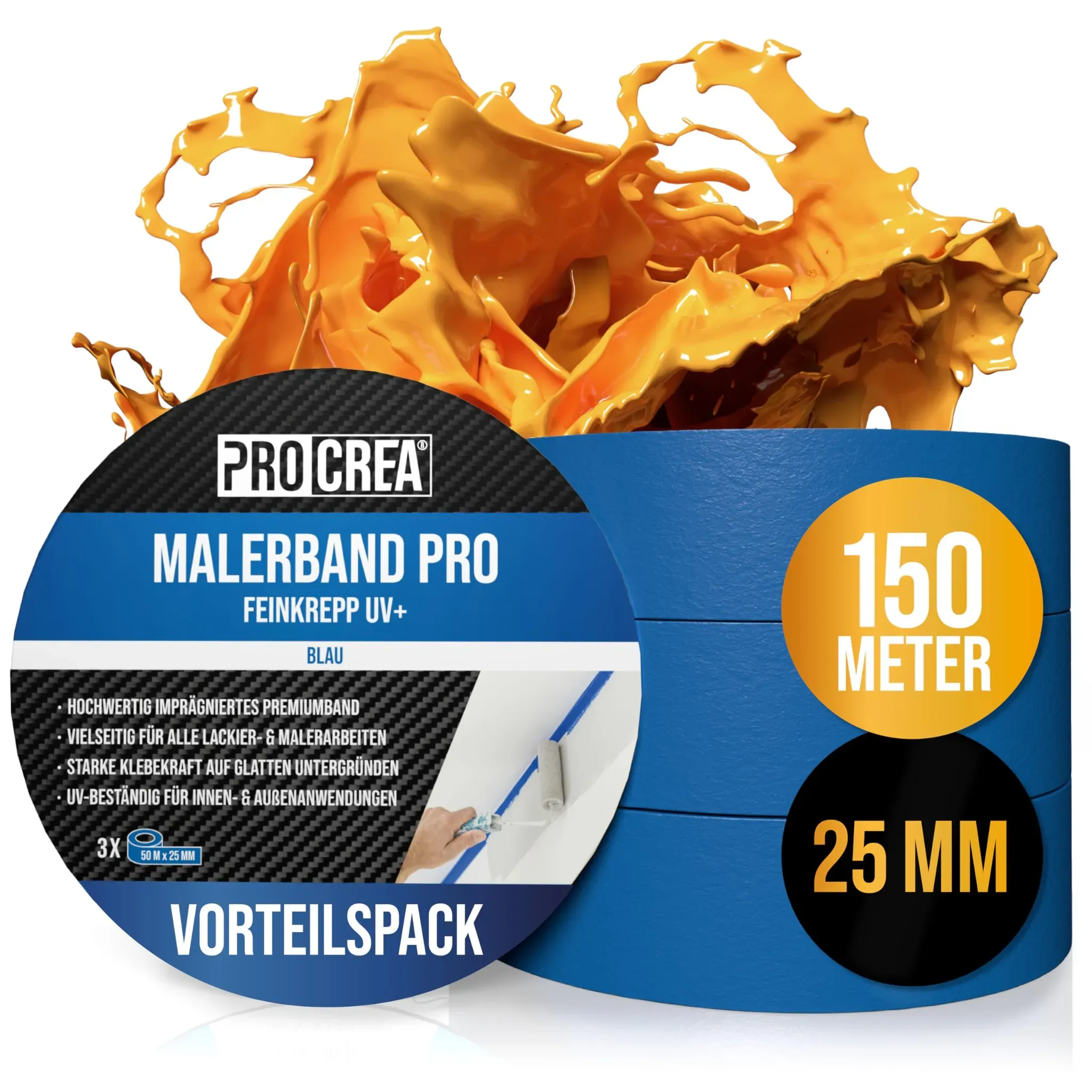 Kategorie: Klebeprodukte - boboeitody - GTIN:0761651988023 - Blue Painters Tape Bulk: Das Blue Tape Set kommt mit 5 Rollen von 1 Zoll x 55 Yards (25mm x 50m x 5 Rollen) blau Malerband (275 Gesamtyards). Aufgrund des hochwertigen Krepppapiers ist unser blaues Abdeckband nicht nur mit ungiftigem und säurefreiem Material sicher zu verwenden, sondern verfügt auch über UV-Schutz und Lösungsmittelbeständigkeit. In der Zwischenzeit können Sie das Malerband leicht und ohne Schere abreißen! Sie können problemlos auf diesem Farbband zum Markieren oder Arbeiten schreiben. Ein ausgezeichneter Helfer bei Farbprojekten! Blaues Klebeband Anwendungstipps: Im Gegensatz zu anderen Malerbändern mit schlechtem Kleber verfügt dieses blaue Malerband 1-Zoll über perfekte Klebrigkeit. Sie können es auf eine Vielzahl von glatten oder leicht strukturierten Wänden, Glas-, Papier-, Metall-, Keramik-, Leinwand-, Holz-, Fliesen- oder Hartholzböden anwenden. Tipps: 1. Stellen Sie sicher, dass die Oberfläche vor Gebrauch sauber und trocken ist. 2. Drücken Sie das Malerband nach dem Auftragen kaum herunter. 3. Warten Sie 30 bis 60 Minuten vor dem Malen. Einfach zu bedienen: Blaues Band enthält eine Krepppapier-Rückseite, die es helfen kann, fest auf den Oberflächen zu haften. Drücken Sie das Malerband flach, um seine Kanten zu versiegeln, damit es effektiv verhindert, dass Farbe unter das Malerband eindringt. Wenn Sie unser blaues Malerband 1-Zoll verwenden, um einen Rahmen zum Malen oder Abdichten zu ... Dieses Kreppband ist eine gute Wahl für alle, die ein hochwertiges Produkt für den Innen- und Außenbereich suchen, da es wasser- und hitzebeständig ist. ![]() ![]() PROCREA 3x Premium Malerkrepp Pro UV [Vorteilspack 3x 25 mm] Blaues Kreppband Malerband für innen & außen - Wasser- & Hitzebeständiges Abklebeband zum Streichen, Lackieren und Renovieren