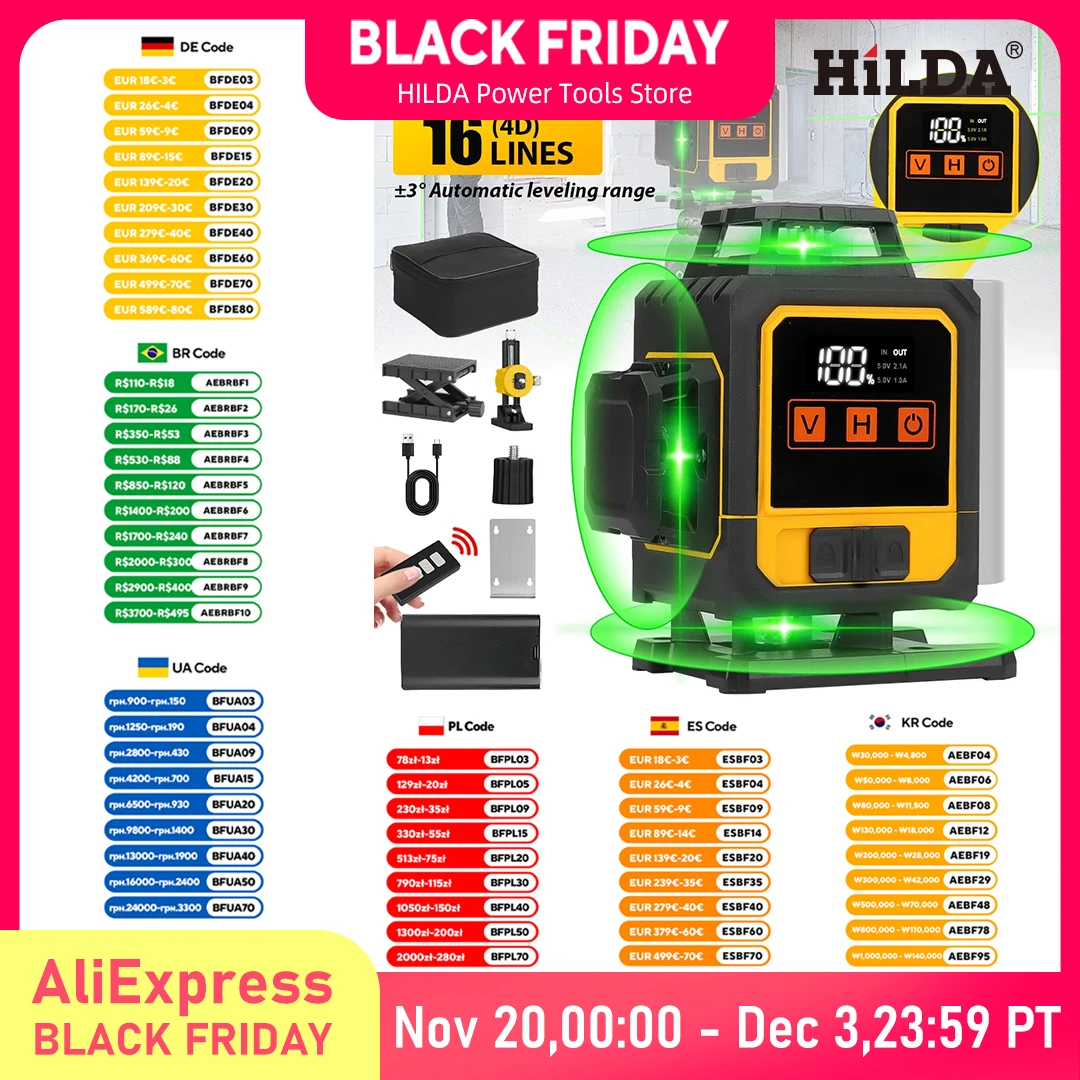 Der angezeigte Preis könnte seit dem letzten Update gestiegen sein - HILDA 16-Linien-Laser-Wasserwaage, grünes Licht, vertikale Messung, Kreuzlaser-Wasserwaage, Bauwerkzeug, wiederaufladbares Akku-Werkzeug - Zustand: NEW - bei Aliexpress DE - gefunden von Buycentral Dieser Kreuzlaser bietet 16 Linien und 3 Modi zu einem sehr attraktiven Preis, was ihn vielseitig einsetzbar macht. ![]() ![]() Kiprim 4x360 Professional Linienlaser 16 Linien 40M Grün Selbstnivellierender Kreuzlaser mit 3 Modi,Magnetische Wandhalterung,wiederaufladbarer Batterie LV4D für Innenbereich Baustelle