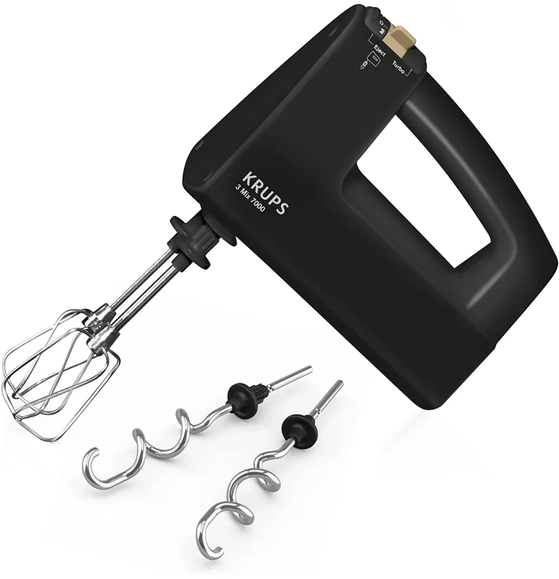 KRUPS - EAN: 3045386376285 - Noch nie war Mixen so einfach: Mit dem KRUPS 3MIX 7000 Handmixer stellt man im Handumdrehen perfekten Back- oder Rührteig, Eischnee und Schlagsahne her. Dieses einfach zu bedienende Küchengerät ist mit Quirlen aus Edelstahl ausgestattet und sorgt dafür, dass man perfekten Eischnee für köstliche Baiser, Mousse, Souffl , Schlagsahne und vieles mehr zaubern können. Die dicken Edelstahl-Knethaken sorgen dabei für ein perfektes Ergebnis für alle Teigarten, zur einfachen Zubereitung von leckerem Brot-, Pizzateig oder Hefegebäck. Dieser perfekte Handmixer wird durch den ergonomischen Griff, der für optimalen Halt und Bedienkomfort sorgt, und durch die stufenlose Geschwindigkeitsregulierung und die Turbostufe für eine perfekte Steuerung abgerundet. - bei alternate.de - aus Yadore Produktdaten Dieses Angebot für 49,99 Euro bietet den Krups 3 Mix 7000 in Schwarz und ist ein gutes Mittelklasse-Angebot. ![]() ![]() Krups 3 - Mix 7000 eBay Handmixer 500W - Schwarz (F6085811)