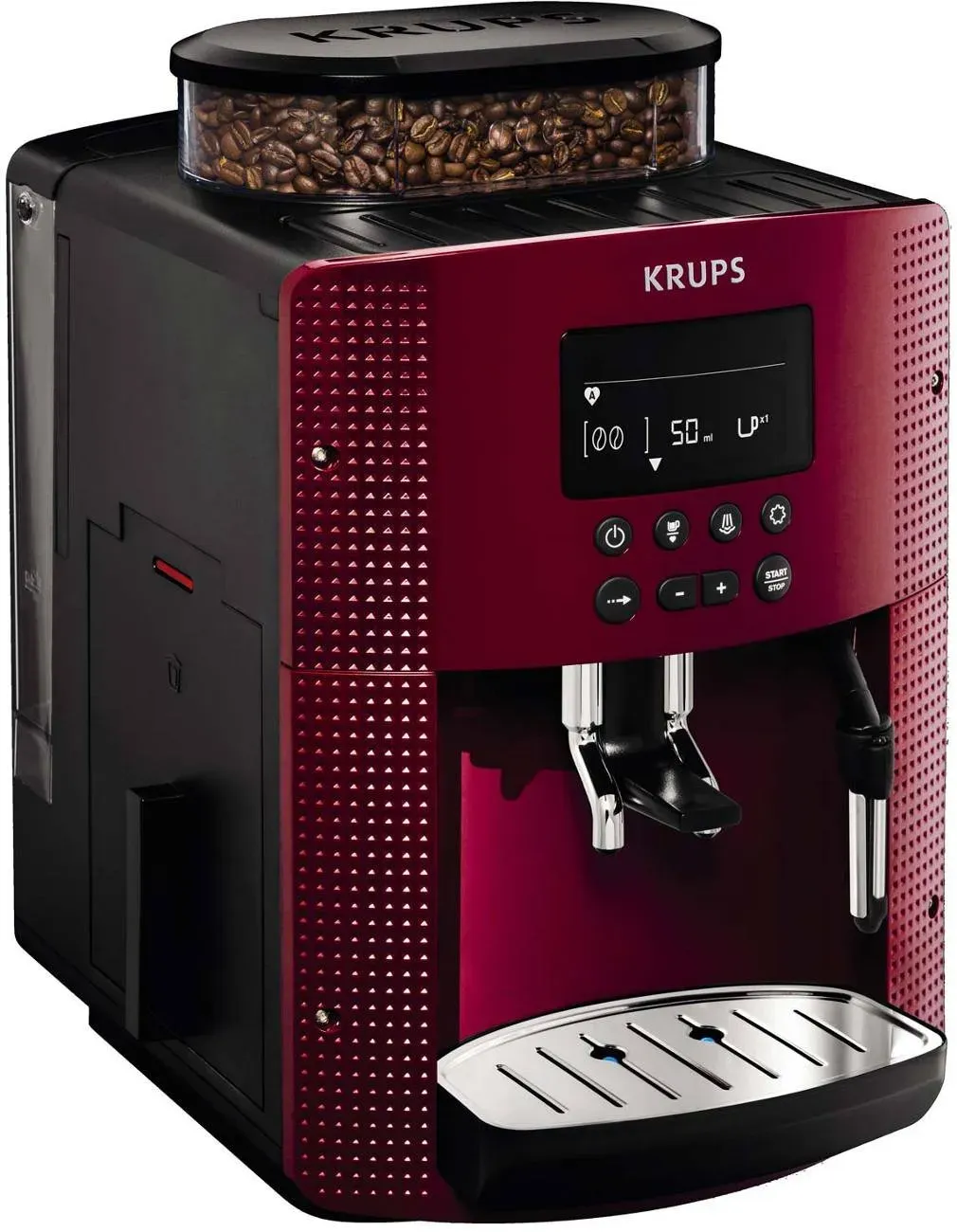 Zustand: Neu - Kaffeevollautomaten - KRUPS Krups - EA897B10 - EAN: 3016661164156 - Perfektes Brühen: Die Quattro Force Technologie optimiert jeden Schritt der Kaffeezubereitung - Mahlen, Tampen, Brühen und Extraktion €” für den perfekten Espresso von der Bohne in die Tasse Vielseitig: Außergewöhnliche Auswahl und Vielseitigkeit mit direktem Zugriff auf 8 voreingestellte Zubereitungen von Kaffee und Kaffee mit Milch: Ristretto, Espresso, Lungo, Americano, Cappuccino, Latte Macchiato, Caffe Latte und Heißwasser für Tee Öko-Design: Eine Kaffeevollautomat-Maschine für den perfekten Kaffeegeschmack im exklusiven Öko-Design für eine reduzierte Umweltbelastung (aus 62%* recyceltem Kunststoff und bis zu 90% recycelbar) *In Bezug auf das gesamte Kunststoffgewicht oder 31% des gesamten Gewichts der Maschine One-Touch Cappuccino-System: Genießen Sie die mühelose Zubereitung von bis zu zwei Cappuccinos und Latte Macchiatos gleichzeitig auf Knopfdruck, für köstlich cremige Ergebnisse im Handumdrehen; individuelle Getränkezubereitung: Stellen Sie die Kaffeestärke auf Ihren Geschmack ein, ebenso wie die Menge - speichern Sie Ihre Liebelingsgetränke (bis zu zwei Zubereitungen) Mühelose Reinigung und Pflege: Für das automatische Reingungssystem sind nur drei Reinigungstabletten im Jahr erforderlich - für ein perfektes Gerät mit weniger Pflegeaufwand als die meisten automatischen Kaffeemaschinen Bitte reinigen Sie die Düse nach jedem Milchkauf und drücken Sie die Starttaste anstelle der ... ![]() ![]() Krups ea815570 1.7L Schwarz, Rot Kaffeemaschine
