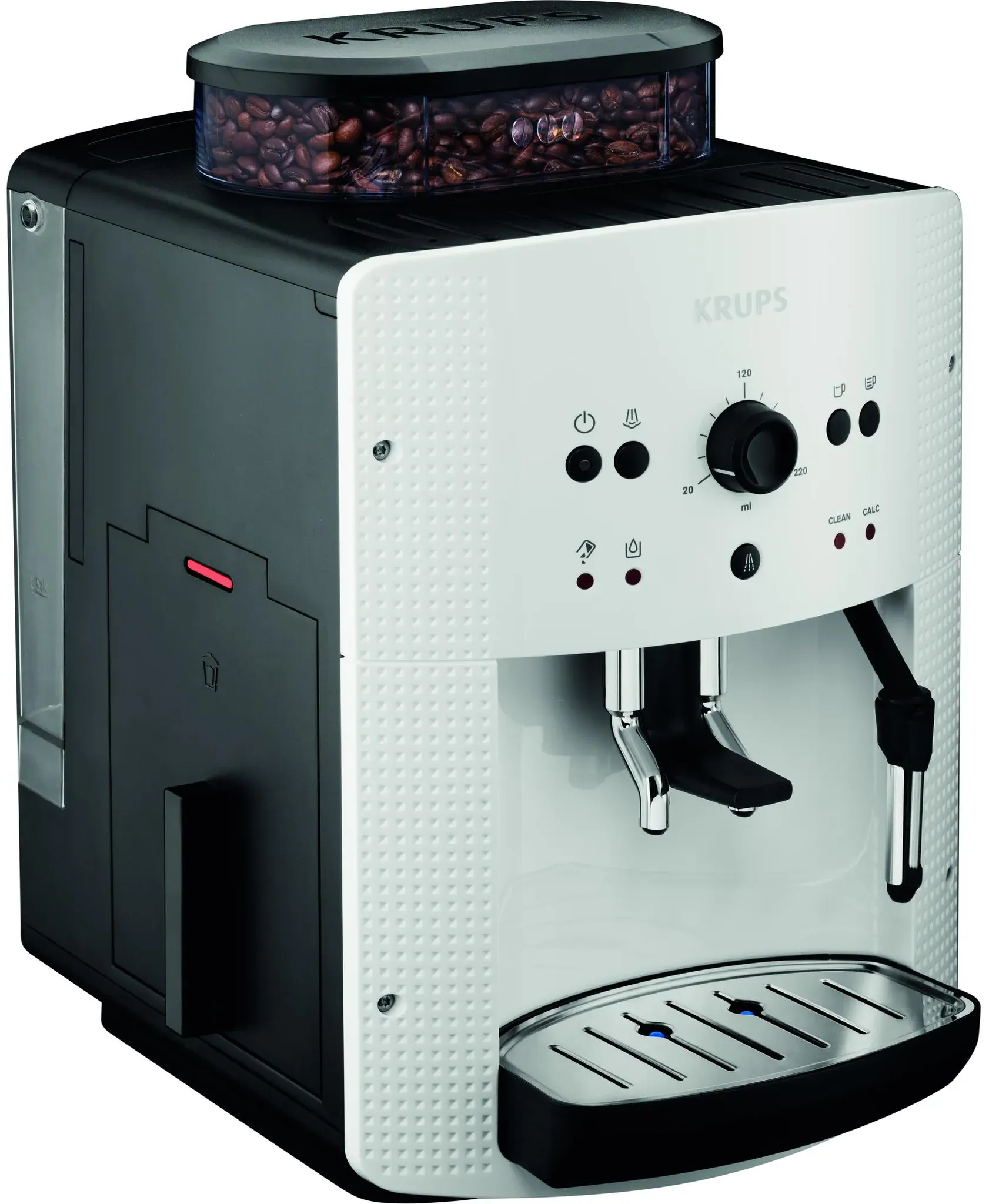 Vollautomatische Kaffeevollautomaten Espressomaschinen Gesamtsortiment Haushalt Kaffeemaschinen Kaffeevollautomat Kaffee- und Espressomaschinen - EAN:0010942216513 - Erleben Sie mit dem Krups Essential Espresso-Automat den authentischen, reinen Geschmack von Espresso, von der Bohne direkt in die Tasse. Dieser Espresso-Vollautomat bietet die Benutzerfreundlichkeit eines kompakten Formats, ohne Abstriche in puncto Kapazität. Sie ist eine Kombination aus benutzerfreundlichen Funktionen und einemauthentischen Kaffee- und Espressogeschmack und rt optimale Ergebnisse. - gefunden von Kelkoo Eine preiswerte Option für einen weißen Kaffeevollautomaten, der sich gut in helle Küchen einfügt. ![]() ![]() Krups Essential Espresso, Kaffeevollautomat, Weiss