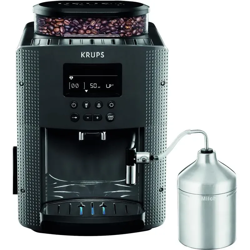 Kategorie: Kaffeevollautomaten - Krups - GTIN:0010942218746 - Automatische Kaffeemaschine mit Milchaufschäumer, 15 bar, Grau - 307,10 Euro bei Proshop.de - gefunden von billiger.de Dieses Modell bietet ein LCD-Display und verschiedene Temperatur- und Mahlgradeinstellungen für individuellen Kaffeegenuss. ![]() ![]() Krups EA8150 Kaffeevollautomat Essential Espresso | 1450 Watt | 1,7 Liter Wassertank | 15 bar | LCD-Display | 3 Temperaturstufen + 3 Mahlgrade | Schwarz