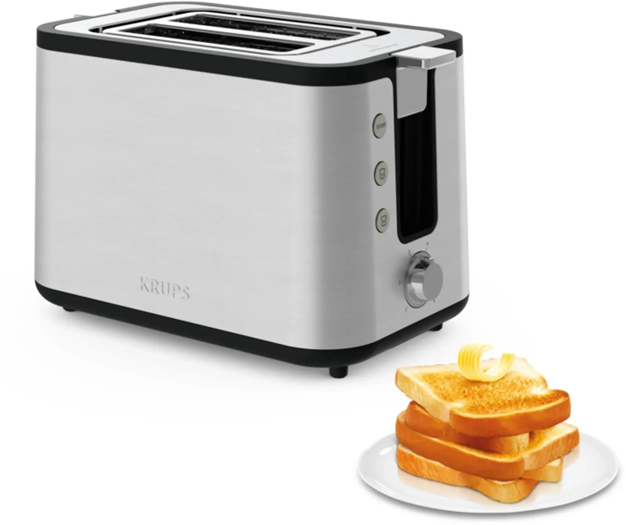Auf Lager Versand durch AmazonKrups KH442D Control Line Premium Toaster, Edelstahl, 2 kurze Schlitze für 2 Scheiben, Brötchenaufsatz, 6 Bräunungsgrade, 850 W, 23.6 x 32.4 x 20.2 cm, Silber/ Schwarz