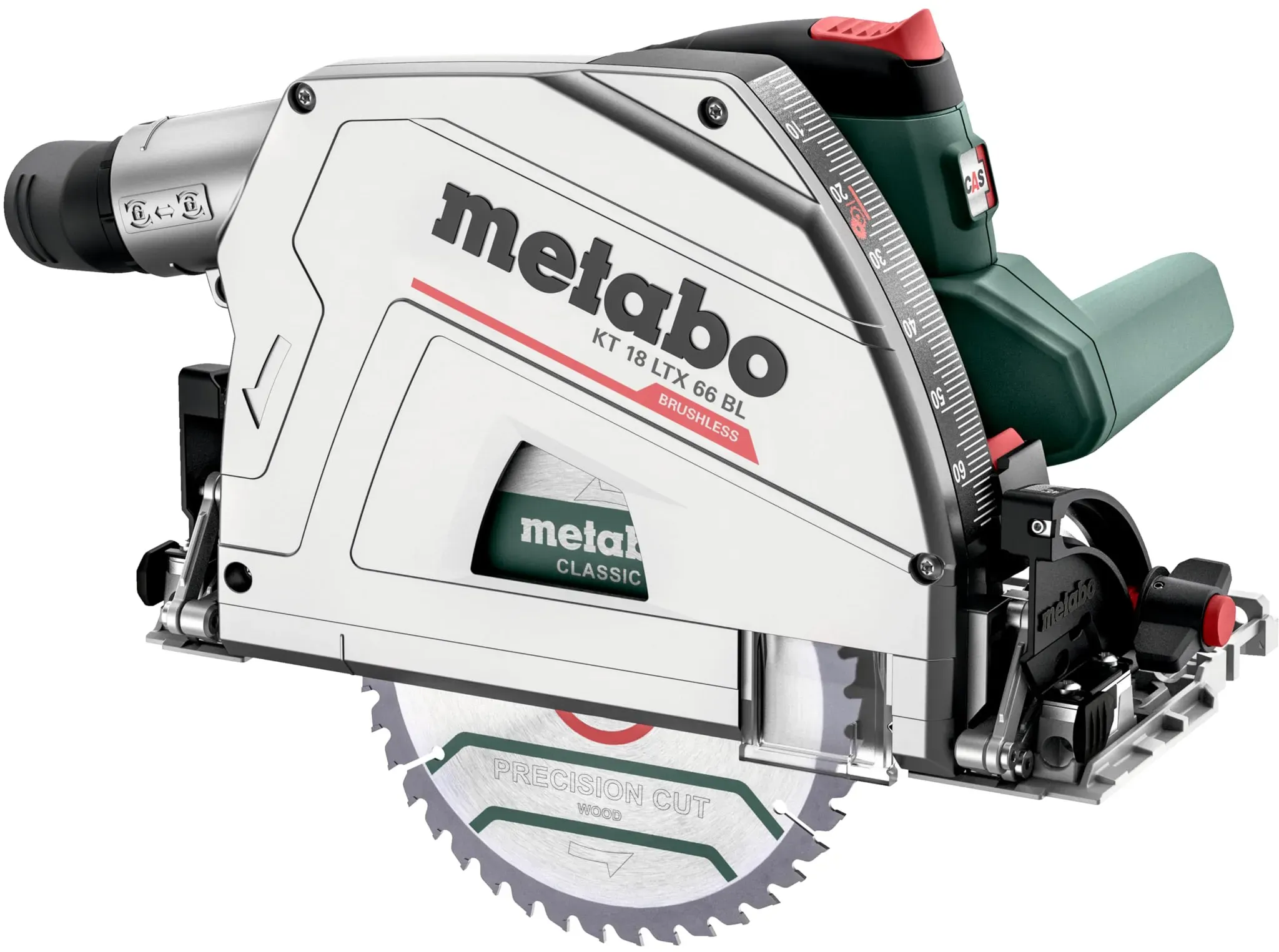 keine Angabe Gewöhnlich versandfertig in 2 bis 3 TagenMetabo Akku-Tauchkreissäge KT 18 LTX 66 BL ? 601866810 ? 18 V ? Mit Brushless-Motor für präzise Sägeschnitte bis 66 mm Tiefe ? Inkl. Ladegerät ASC 145 und 2 x 8Ah Akkupack