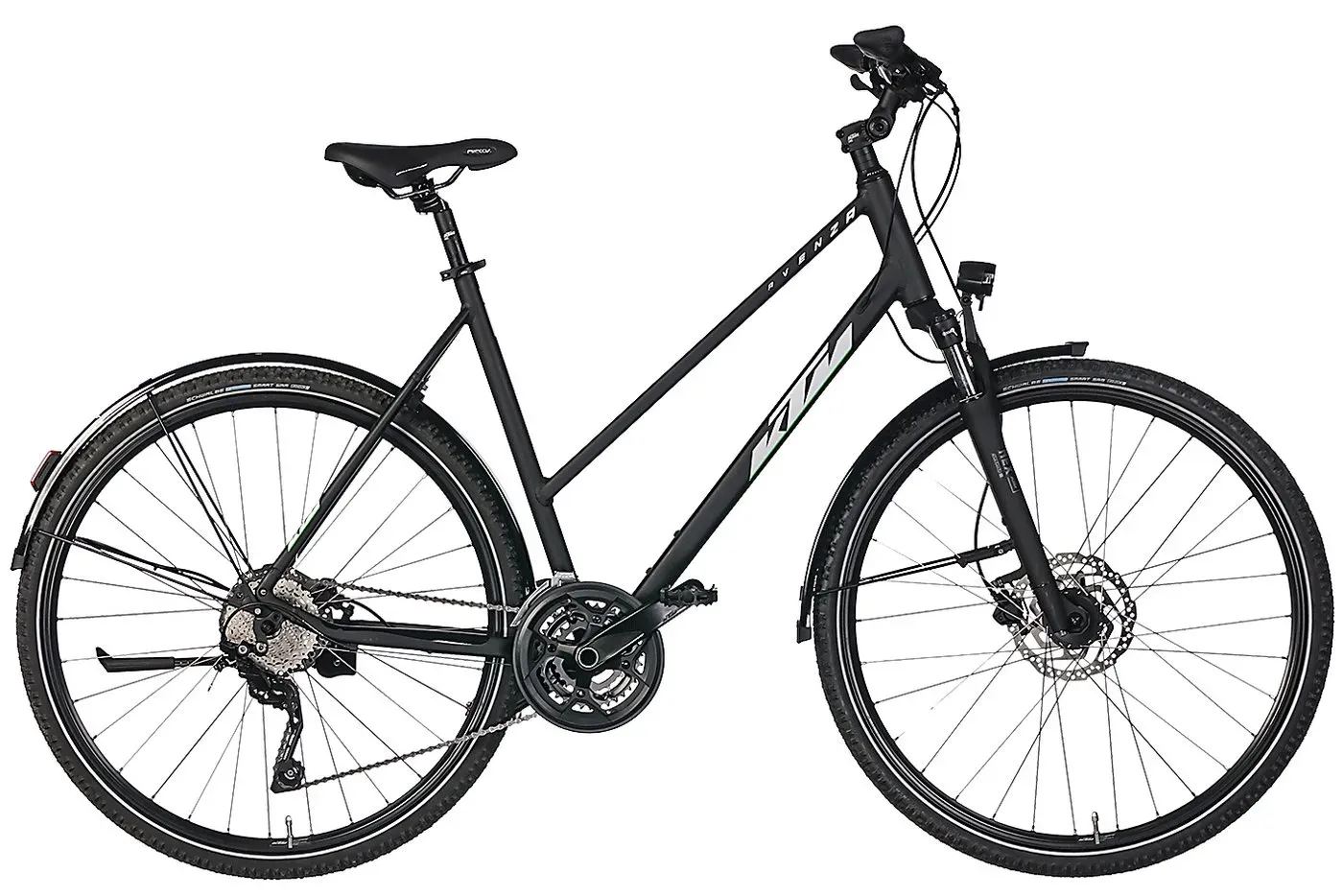 lieferbar-in 5-6 Werktagen bei dirKTM Crossrad KTM Avenza Cross Street Damen schwarz(weiß/berry) 2024, 27 Gang Shimano Deore T6000-10 SGS shadow, Kettenschaltung 56 cm