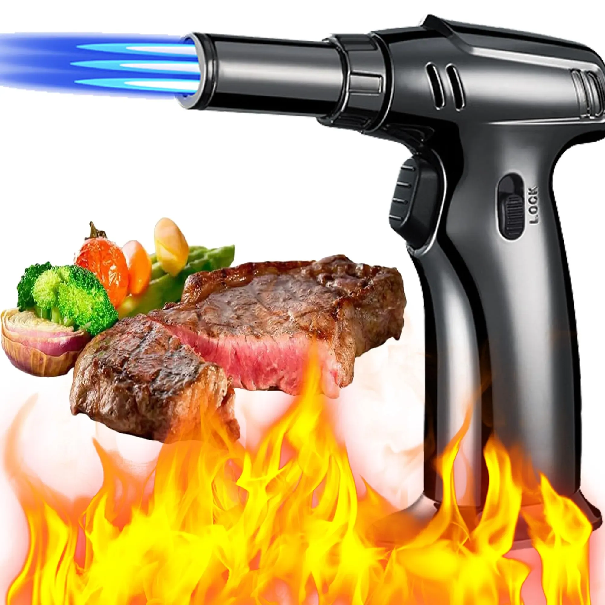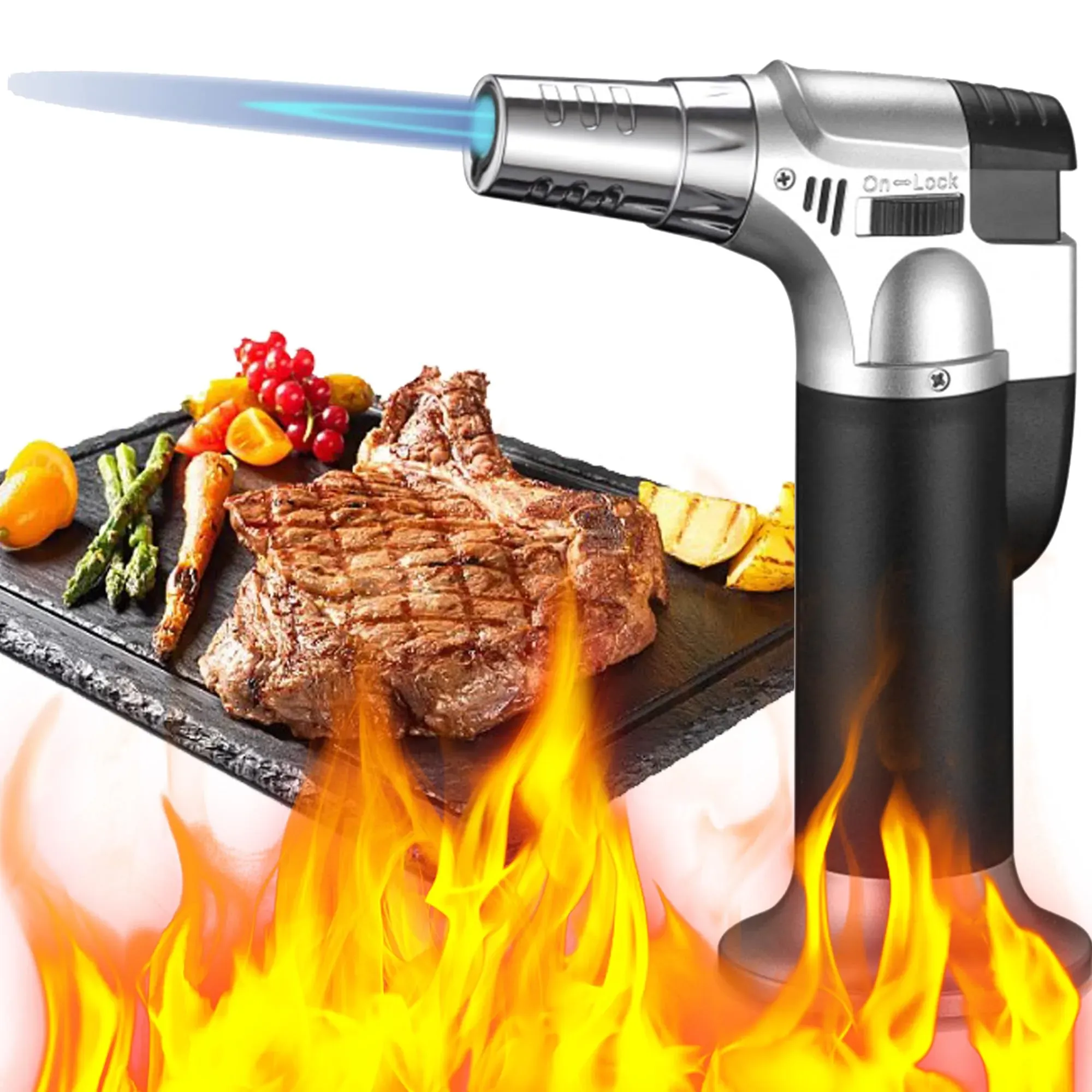 Kategorie: Grillzubehör - XUBX - Professionelle Lötlampe Diese kulinarische Lötlampe für die Küche ermöglicht eine schnelle, sichere und sofortige Beleuchtung und bietet eine unübertroffene Flammenkonsistenz und Zuverlässigkeit, die ideal für professionelle Köche oder Bäcker zu Hause ist. Einstellbare Flamme Die Mini-Lötlampe verfügt über einen Gasflussregler zum einfachen Einstellen der Flamme und eine Gasfluss-Sicherheitsverriegelung im ausgeschalteten Zustand. Der Brenner kann eine kontinuierliche Flamme mit einer Temperatur von 1300 C erzeugen. Grillfeuerzeug mit Sicherheitsverriegelung Unsere Lötlampe verwendet die Piezo-Zündtechnologie und die Sicherheitsverriegelung verhindert ein versehentliches Zünden. Drücken Sie die Taste, um das Feuer anzuzünden, und schieben Sie das Sicherheitsschloss nach rechts, um das Feuer zu sperren. Der Lötbrenner ist sicher und auslaufsicher. Der eingebaute Fingerschutz bietet Komfort für die Hand und schützt die Finger vor Verbrennungen. Refillable The blow torch is refillable by using high-quality Butane gas fuel with a long-nozzle gas cylinder. Once filled, let the torch lighter rest for a few minutes before using it again. Please turn the Fire Ignition toward 'CLOSE' and tune temperature regulator lowest, when you are not using it. (Gas Is Not Included In) Widely Applications The portable torch is not just for the kitchen and can be used in multiple ways; it's great for sous vide, searing meat, bar cocktails, lighting a fire, ... ![]() ![]() ZEACCT Kochbrenner, Butangas-Küchenbrenner, Gasbrenner, Professioneller Küchen-Butangasbrenner, Lötbrenner, Weiß