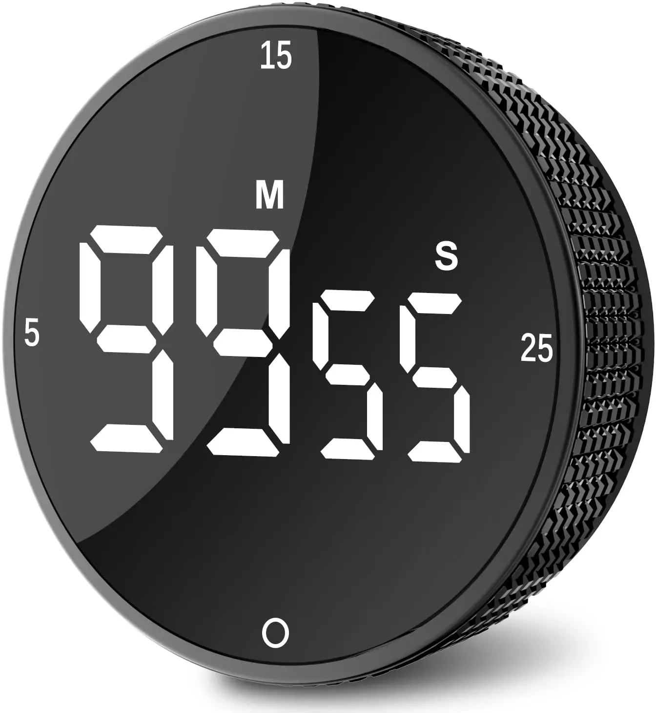 Kategorie: Sonstige Küchenhelfer - ultralent - Timer Magnetisch Einfach drehen um die Zeit einzustellen, und [O] drücken um zu starten/stoppen. Sogar Kinder und Senioren können ihn problemlos bedienen. Starke Magnete auf der Rückseite zur Platzierung auf jeder Eisenoberfläche, einfach an Kühlschranktür, Mikrowelle usw. anzubringen, damit Sie Ihr Kochen im Griff haben, ohne Ihren Arbeitsablauf zu unterbrechen. Verbesserte Version - 3 voreingestellte Funktionen und Speicherfunktion Genaue Zeitmessung: Countdown von 99 Minuten 55 Sekunden bis 00:00 Sekunden oder als Stoppuhr von 00:00 bis 99:55 Sekunden. Im Gegensatz zu anderen Küchentimern verfügt unser Timer über 3 voreingestellte Countdown-Funktionen: Klicken Sie einfach auf die Zifferntaste, um 5/15/25 Minuten einzustellen. Er verfügt auch über eine Speicherfunktion: Der rotierende Timer kann sich die zuletzt eingestellte Zeit merken, die Einstellung muss nicht wiederholt werden. Wenn die Zeitmessung abgeschlossen ist, drücken Sie einfach [o], um zur zuletzt voreingestellten Zeit zurückzukehren. Ultraklares LED-Display Dieser digitale visuelle Timer verfügt über ein 3 Zoll großes LED-Display mit Hintergrundbeleuchtung, das die Countdown/Count up in fettgedruckten weißen Ziffern für mühelose Lesbarkeit anzeigt. Stellen Sie sicher, dass Sie die Ziffern klar erkennen, auch wenn Sie weit weg sind oder sich in einer schwach beleuchteten Küche befinden. Saubere Küchentimer Digital, 3 AAA-Batterien im Lieferumfang enthalten, 3 ... ![]() Küchenuhren digitale Klassenzimmertimer große magnetische LED Countdown Timer mit konstanter Lichtfunktion für Klassenzimmer leise für Lehrer