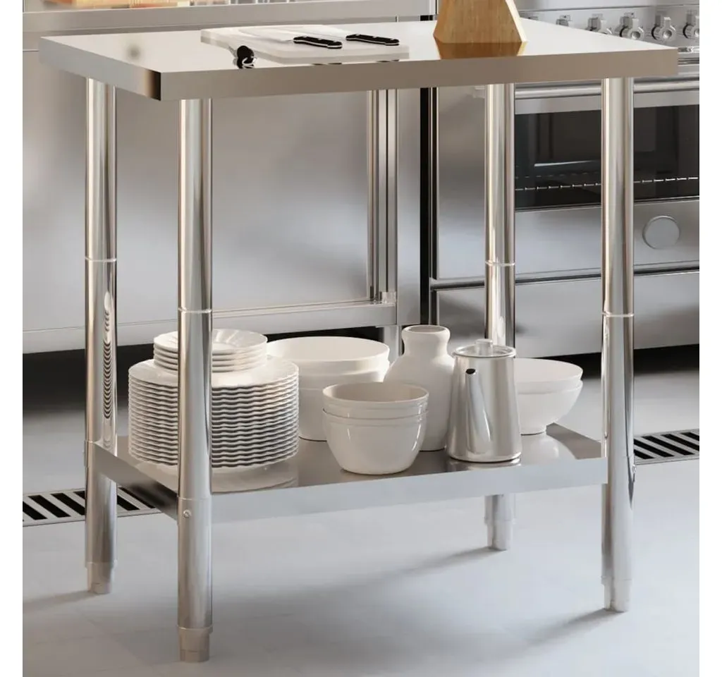 lieferbar-in 7-9 Werktagen bei dirvidaXL Küchenwagen Küchenwagen Küchen-Arbeitstisch 82,5x55x85 cm Edelstahl silberfarben