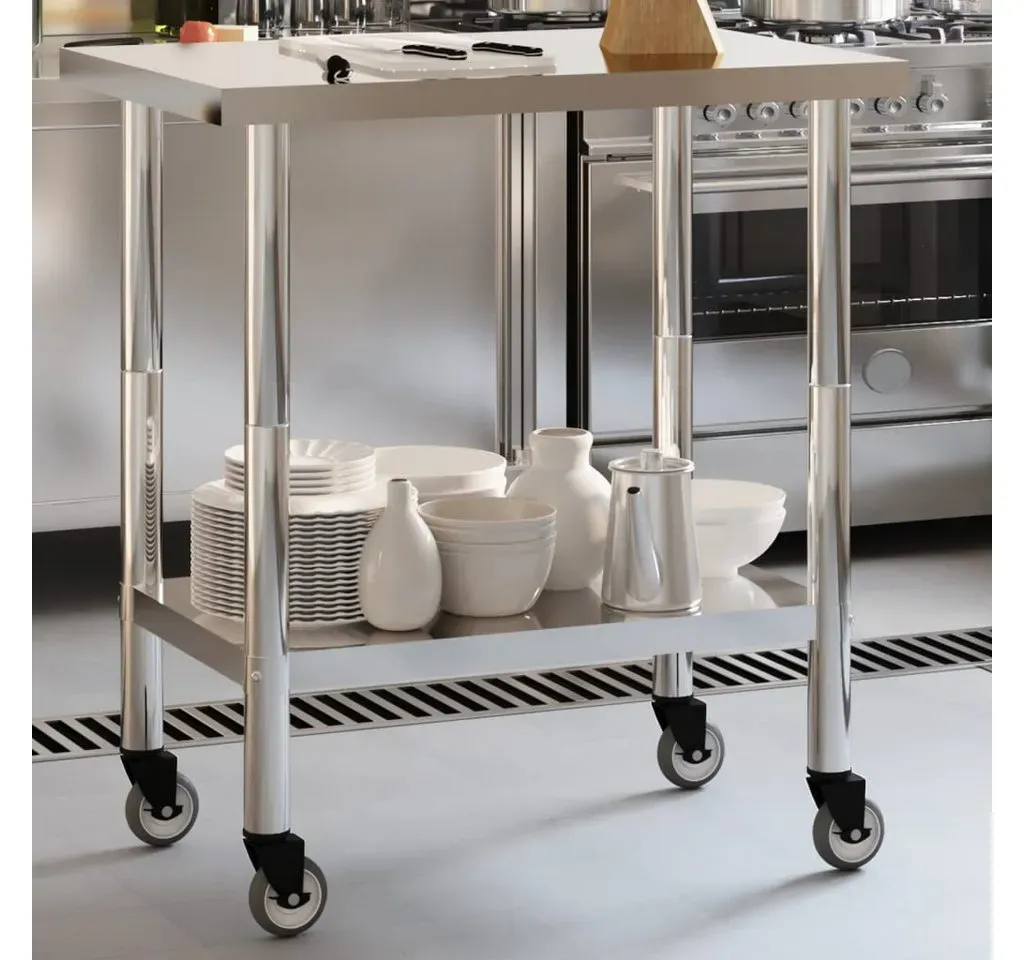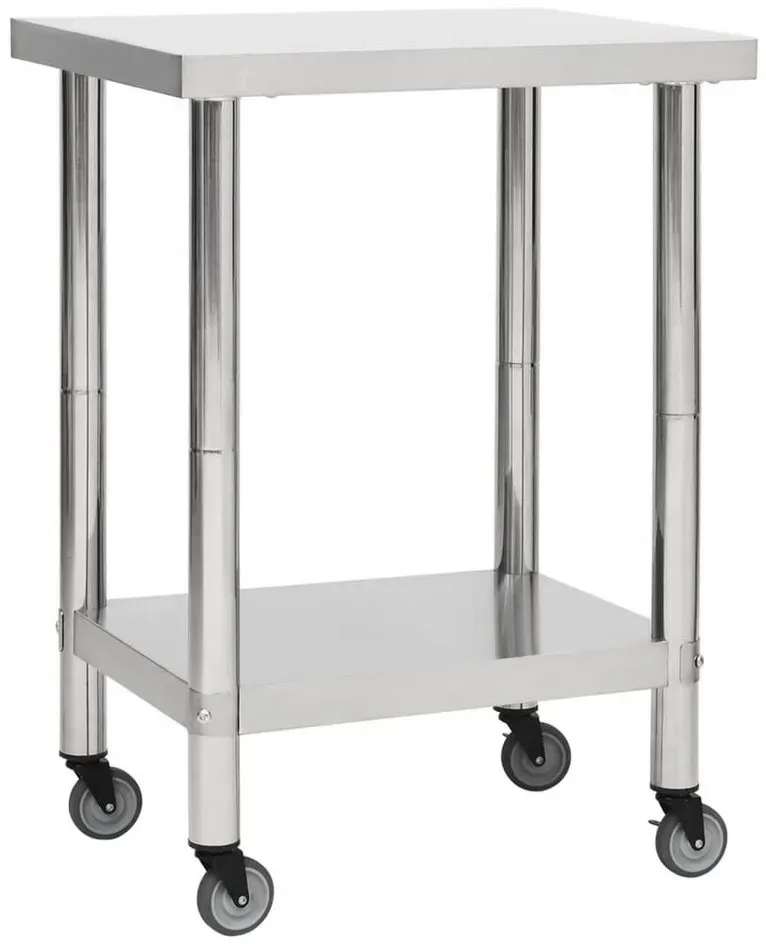 lieferbar-in 7-9 Werktagen bei dirvidaXL Küchenwagen Küchen-Arbeitstisch mit Rollen 60x30x85 cm Edelstahl Küchentrolley silberfarben