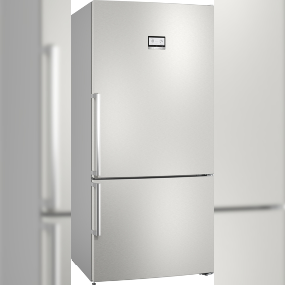 Möbel Räume Küche Kühlschränke Kühl-Gefrierkombinationen - EAN:6901018091100 - Produktdetails: Farbe Front: Edelstahlfront - Inox, Farbe Seitenteile: Edelstahlfront - Inox, Top-Feature: Top-Features: Total No-Frost Technologie, Holiday-Funktion, Inverter Kompressor, LED-Innenbeleuchtung, Weitere Vorteile: Türanschlag wechselbar, Leistung & Verbrauch: Modellbezeichnung: HTW7620ANMG, Energieeffizienzklasse: A, Skala Energieeffizienzklasse: A bis G, Jährlicher Energieverbrauch: 116, Lagerzeit bei Störung: 13, Gefriervermögen in 24 Stunden: 12, Klimaklasse: SN/N/ST/T, Rauminhalte der Kühlfächer: 289 l, Rauminhalte der Tiefkühlfächer: 125 l, Gesamtrauminhalt: 414 l, Luftschallemissionsklasse: B, Luftschallemissionen: 35 dB(A), Ausstattung: Display mit Temperaturanzeige: auf der Tür, Warnsignal: Tür offen, Art Warnsignal: akustisch, Art Bedienung: App-Bedienung, Ausstattung & Funktionen Kühlteil: Anzahl Ablageflächen: 3 Stk., Anzahl Türablagen: 6, Anzahl Kühlschubladen: 2, Material Ablagen: Glas, Art Innenbeleuchtung: LED-Innenbeleuchtung, Eigenschaften Ablagen: verstellbar, Ausstattung & Funktionen Gefrierteil: Anzahl Gefrierschubladen: 2, Zusatzfunktionen Gefrierteil: Schnellgefrierfunktion, Informationen zum Einbau: Einbauart: freistehend, Maße & Gewicht: Höhe: 205 cm, Breite: 59,5 cm, Tiefe: 66,7 cm, Gewicht: 109 kg, Höhe mit Verpackung: 214,4 cm, Breite mit Verpackung: 66,3 cm, Tiefe mit Verpackung: 74,8 cm, Technische Daten: Abtauverfahren: auto-defrost, WEEE-Reg.-Nr. DE: ... Die Bosch Serie 6 KGN86AIDR ist eine geräumige freistehende Kühl-Gefrier-Kombination mit gebürstetem Stahl und Anti-Fingerprint-Beschichtung. ![]() Bosch Serie 6 KGN86AIDR Freistehende Kühl-Gefrier-Kombination mit Gefrierbereich unten, 186 x 86 cm, Gebürsteter Stahl mit Anti-Fingerprint