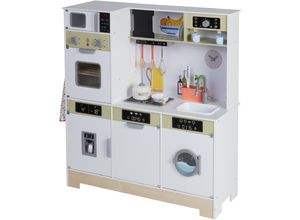 Holzspielzeug Lifestyle Spiele Spielzeug - - Stabile Konstruktion aus Massivholz Fördert spielerisch Fantasie und Kreativität Kann auf 3 verschiedene Höhen eingestellt werden (97/101/103 cm) 2 beleuchtete Kochfelder mit Koch- und Bratgeräuschen Drehbare Regler mit Klickgeräusch Dunstabzugshaube mit Licht- und Soundeffekten Backofen mit Licht (inkl. 1x Backblech) und eingebaute Mikrowelle Kühlschrank mit Eiswürfelbereiter (inkl. 3x Eiswürfel + 1x Kunststoffglas) Spüle mit schwenkbarem Wasserhahn, Geschirrspüler mit herausnehmbarem Korb Kunststoff-Mülleimer auf der rechten Seite Kreidetafel und Magnetwand mit Ernährungspyramide auf dem oberen Teil der Rückwand (inkl. 1x Kreide + 8x Magnete) ist abzuändern (einzelnen Aufzählungspunkte)! strong = fett -- Umfangreiches Zubehör: Dampftopf mit Nebel und Sound, Bratpfanne, Fleischgabel, Pfannenwender, Schneebesen, 3x Plastikgeschirr, Plastikbecher, Schürze; Geschirrtuch, Ofenhandschuh, Kreide, Korb + Tablett (herausnehmbar) Kann mit anderen Spielsets von Playtive und Lupilu kombiniert werden 24-teilig Produktmerkmale table{width:100%;}td{padding-right: 30px; padding: 0.5rem; border-bottom: 0.0625rem solid #e3e4e5;} tr:nth-child(odd) {background-color: #F2F3F4;} Bestandteile: 1x Küche; 1x Topf mit Deckel, 1x Pfanne, 1x Schneebesen, 1x Pfannenwender, 1x Gabel, 1x Schürze; 1x Geschirrhandtuch, 1x Topfhandschuh, 1x Kreide, 3x Eiswürfel (Holz), 1x Becher, 4x Standbein Kunststoff, 8x Magnet, 3x Gericht, 1x Becher transparent Maße: ca. L ... Manomano.d e