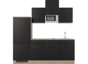 Komplett-Küchen Wohnen - - Produktdetails: Serie: Capri, Set beinhaltet: Edelstahl-Einbauspüle 40x50 cm mit Ab-und überlaufgarnitur, Ausstattung Funktionen: Art Küche: Küchenzeile, Ausstattung: Durchgehende Arbeitsplatte, Einlegeböden höhenverstellbar, Laufleisten der Schubkästen aus Metall, Metallgriffe, Seitenverkehrt stellbar, Sockelhöhe nicht verstellbar, inkl. Edelstahl-Einbauspüle, ohne Abtropffläche, mit E-Geräten, weitere Informationen zu Elektrogeräten: siehe Produktdatenblatt, Ausstattung Geräte: mit E-Geräten, Farbe Material: Farbe Korpus: Endgrain Oak, Material Korpus: Holzwerkstoff, Farbe Front: Schwarz, Material Front: Holzwerkstoff, Farbe Schubladen: Schwarz, Farbe Türen: Schwarz, Farbe Griffe: Schwarz, Material Griffe: Metall, Farbe Absetzungen: Endgrain Oak, Farbe Arbeitsplatte: Endgrain Oak, Farbe Innendekor: Weiß, Material Beschläge: Metall, Material Schubladenauszug: Metall, Hinweis Farbe: Bitte beachten Sie, dass bei Online-Bildern der Artikel die Farben auf dem heimischen Monitor von den Originalfarbtönen abweichen können., Maßangaben: Breite: 210 cm, Tiefe: 60 cm, Höhe: 205 cm, Breite Schenkel 1: 210 cm, Arbeitshöhe inkl. Arbeitsplatte: 85 cm, Hinweis Maßangaben: Alle Angaben sind ca.-Maße., Unterschrank: Anzahl Unterschränke: 1 Stk., Art Unterschrank: Unterschrank, Breite Unterschrank: 50 cm, Tiefe Unterschrank: 57,1 cm, Höhe Unterschrank: 82,2 cm, Anzahl Türen Unterschrank: 1 Stk., Anzahl Einlegeböden Unterschrank: 1 Stk., Anzahl Schubladen ... ![]() Küchenzeile FLEX-WELL 'Capri', schwarz (küche: schwarz, front: schwarz, korpus: endgrain oak, arbeitsplatte: endgrain oak), B:210cm H:205cm T:60cm, Komplettküchen-Sets, mit E-Geräten, Gesamtbreite 210 cm, in weiten Farben erhältlich