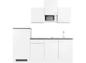 Komplett-Küchen Wohnen - - Produktdetails: Serie: Lucca, Ausstattung Funktionen: Art Küche: Küchenzeile, Ausstattung: Durchgehende Arbeitsplatte, Einlegeböden höhenverstellbar, Laufleisten der Schubkästen aus Metall, Seitenverkehrt stellbar, Sockelhöhe nicht verstellbar, inkl. Edelstahl-Einbauspüle, ohne Abtropffläche, mit E-Geräten, weitere Informationen zu Elektrogeräten: siehe Produktdatenblatt, Ausstattung Geräte: mit E-Geräten, Farbe Material: Farbe Korpus: weiß, Material Korpus: Holzwerkstoff, Farbe Front: weiß matt, Material Front: Holzwerkstoff, Farbe Schubladen: Weiß, Farbe Türen: Weiß matt, Farbe Griffe: Aluminiumfarben, Material Griffe: Kunststoff, Farbe Arbeitsplatte: Caledonia, Farbe Innendekor: Weiß, Material Beschläge: Metall, Material Schubladenauszug: Metall, Maßangaben: Breite: 210 cm, Tiefe: 60 cm, Höhe: 226 cm, Arbeitshöhe inkl. Arbeitsplatte: 85 cm, Hinweis Maßangaben: Alle Angaben sind ca.-Maße., Unterschrank: Anzahl Unterschränke: 1 Stk., Art Unterschrank: Unterschrank, Breite Unterschrank: 50 cm, Tiefe Unterschrank: 57,1 cm, Höhe Unterschrank: 82,2 cm, Anzahl Türen Unterschrank: 1 Stk., Anzahl Einlegeböden Unterschrank: 1 Stk., Anzahl Schubladen Unterschrank: 1 Stk., Informationen Unterschrank: Höhenangabe ohne Arbeitsplatte, Hängeschrank: Anzahl Hängeschränke: 3 Stk., Art Hängeschrank: Hängeschrank, Breite Hängeschrank: 50 cm, Tiefe Hängeschrank: 32 cm, Höhe Hängeschrank: 55 cm, Anzahl Türen Hängeschrank: 1 Stk., Anzahl Einlegeböden Hängeschrank: 1 ... ![]() Küchenzeile FLEX-WELL 'Lucca', weiß (küche: weiß, front: weiß matt, korpus: weiß, arbeitsplatte: caledonia), B:210cm H:226cm T:60cm, Komplettküchen-Sets, Breite 210 cm, mit Kühlgerät und Glaskeramikkochfeld sowie Mikrowelle