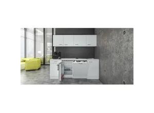 Komplett-Küchen Wohnen - - Produktdetails: Serie: Lucca, Ausstattung Funktionen: Art Küche: Küchenzeile, Ausstattung: Durchgehende Arbeitsplatte, Einlegeböden höhenverstellbar, Laufleisten der Schubkästen aus Metall, Seitenverkehrt stellbar, Sockelhöhe nicht verstellbar, inkl. Edelstahl-Einbauspüle, ohne Abtropffläche, mit E-Geräten, weitere Informationen zu Elektrogeräten: siehe Produktdatenblatt, Ausstattung Geräte: mit E-Geräten, Farbe Material: Farbe Korpus: weiß, Material Korpus: Holzwerkstoff, Farbe Front: weiß matt, Material Front: Holzwerkstoff, Farbe Schubladen: Weiß, Farbe Türen: Weiß matt, Farbe Griffe: Aluminiumfarben, Material Griffe: Kunststoff, Farbe Arbeitsplatte: Caledonia, Farbe Innendekor: Weiß, Material Beschläge: Metall, Material Schubladenauszug: Metall, Maßangaben: Breite: 150,5 cm, Tiefe: 60 cm, Höhe: 226 cm, Arbeitshöhe inkl. Arbeitsplatte: 85 cm, Breite Frontblende: 48,6 cm, Höhe Frontblende: 68 cm, Hinweis Maßangaben: Alle Angaben sind ca.-Maße., Unterschrank: Anzahl Unterschränke: 1 Stk., Art Unterschrank: Unterschrank, Breite Unterschrank: 50 cm, Tiefe Unterschrank: 57,1 cm, Höhe Unterschrank: 82,2 cm, Anzahl Türen Unterschrank: 1 Stk., Anzahl Einlegeböden Unterschrank: 1 Stk., Anzahl Schubladen Unterschrank: 1 Stk., Informationen Unterschrank: Höhenangabe ohne Arbeitsplatte, Hängeschrank: Anzahl Hängeschränke: 3 Stk., Art Hängeschrank: Hängeschrank, Breite Hängeschrank: 50 cm, Tiefe Hängeschrank: 32 cm, Höhe Hängeschrank: 55 cm, Anzahl Türen ... ![]() Küchenzeile FLEX-WELL 'Lucca', weiß (küche: weiß, front: weiß matt, korpus: weiß, arbeitsplatte: caledonia), B:150,5cm H:226cm T:60cm, Komplettküchen-Sets, Küchenzeile, Breite 150,5 cm, mit Unterbau-Kühlschrank, Kochfeld und Spüle