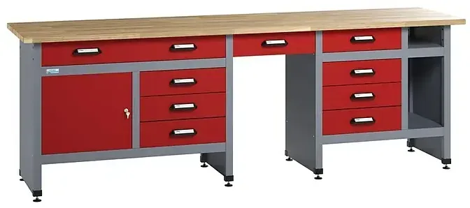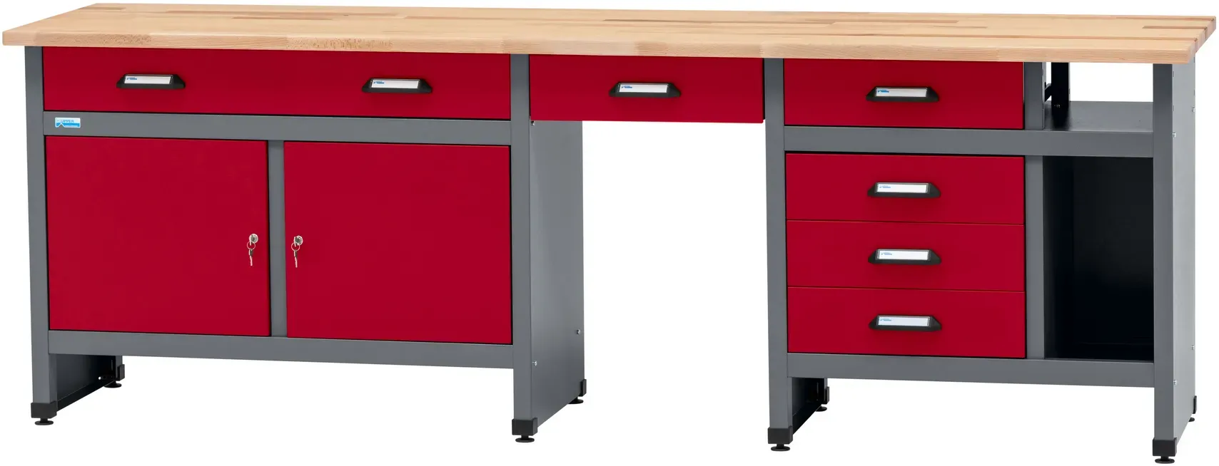 ![]() ![]() KÜPPER Küpper Werkbank mit 6 Schubladen 2 Türen und Sitzraum dunkelrot 240 x 84 x 60 cm