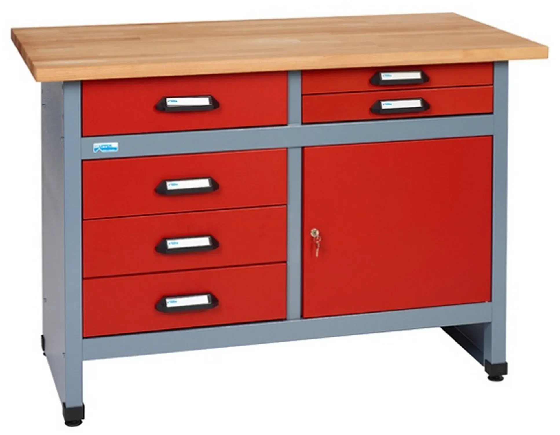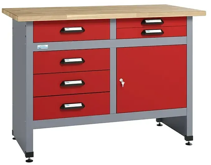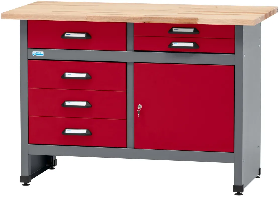 ![]() ![]() KÜPPER Küpper Werkbank Eintürig mit 6 Schubladen dunkelrot 120 x 84 x 60 cm