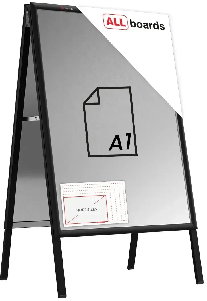 2 Händlerangebote bei billiger.de - Kategorie: Präsentation - ALLboards - Doppelseitiges Design Die Werbetafel besteht aus einer doppelseitigen Struktur, die es Ihnen ermöglicht, zwei verschiedene Inhalte gleichzeitig zu präsentieren. Es bietet auch Festigkeit und Haltbarkeit unter verschiedenen Bedingungen. Der Aluminiumrahmen verleiht dem Ganzen ein elegantes Aussehen. Geöffnet mit Open-Insert-Close-Verschlüssen ermöglicht es einen einfachen und mehrfachen Austausch von Grafiken. Breites Anwendungsspektrum Sie können den Kundenstopper in jedem Raum verwenden, insbesondere in: Restaurant, Cafe, Kino, Museum, Theater, Bar, Laden, Werbeträger. Werbeträger Dank der Verwendung eines doppelseitigen Rahmens mit Laschen können Sie Ihre Werbung vollständig auf interessante und einzigartige Weise präsentieren. Laden Sie Passanten zu Ihrer Veranstaltung ein, informieren Sie über ein besonderes Angebot, präsentieren Sie die Speisekarte des Restaurants, weisen Sie den Weg zu Ihrem Firmensitz die Werbetafel lässt Ihnen alle Freiheiten bei der grafischen Präsentation. - GTIN:5902622414997 Dieser Kundenstopper ist eine beliebte und kostengünstige Option mit Aluminiumrahmen und Schutzfolie, ideal für den Außeneinsatz. ![]() ![]() Floordirekt Kundenstopper DIN A1 - beidseitig für 2 Plakate mit Alu Rahmen 25mm - inklusive Schutzfolie - wetterfester Plakatständer - Gehwegaufsteller Werbetafel