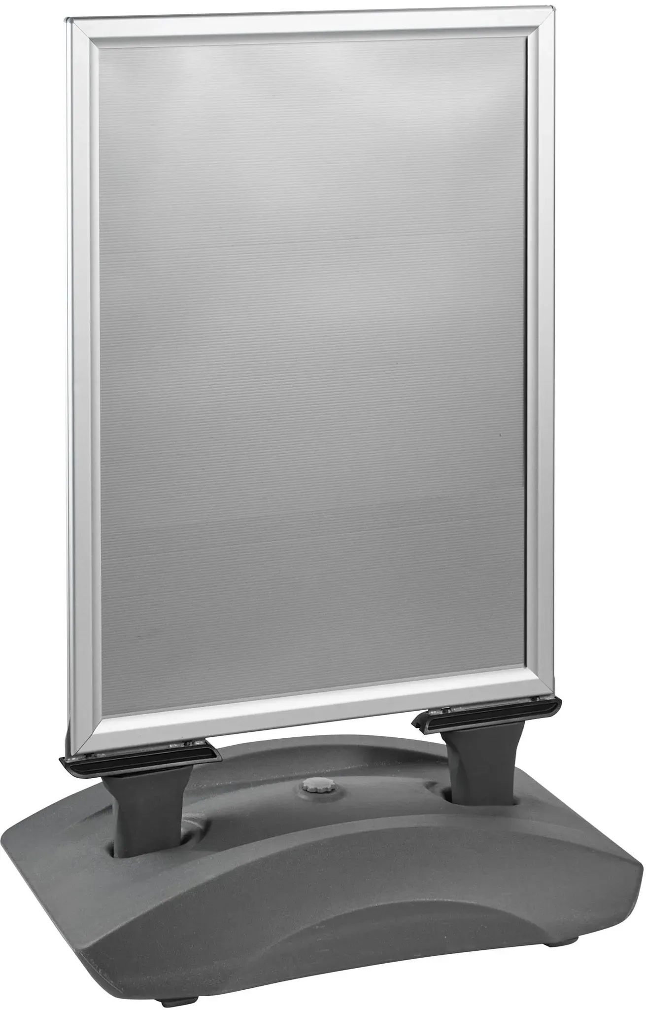 Zustand: Neu - Präsentationsständer Präsentationsständer für Firmen & Büros - Dreifke - l191_WB_schwarz - EAN: 4255682307800 - 🌀 Windstabil & wetterfest - perfekter Outdoor-Aufsteller: Dank des befüllbaren Standfußes (mit Wasser oder Sand) und flexibler Dämpfung durch Doppelfedern bleibt der Kundenstopper auch bei Wind und Wetter sicher stehen. Ideal für den Einsatz im Freien. 📠DIN A1 Format - doppelseitige Werbefläche: Geeignet für zwei Plakate im Format DIN A1 (594 x 841 mm). Der Rahmen aus 32 mm Aluminium in stilvollem Schwarz sorgt für eine professionelle Präsentation von Inhalten auf beiden Seiten. ðŸ›¡ï¸ Mit entspiegelter Schutzfolie: Die Anti-Reflex-Schutzscheiben bewahrt Plakate vor Staub, Schmutz und Spritzwasser - für eine klare Sicht auch bei direkter Sonneneinstrahlung. Einfache Papierposter sind generell nicht für den Außenbereich geeignet. Wir empfehlen hier laminierte bzw. wasserfeste Poster zu verwenden. 🚚 Mobil & trotzdem standfest: Der stabile Fuß bringt befüllt bis zu 29 kg auf die Waage, kann dank integrierter Rollen aber dennoch leicht verschoben werden - perfekt für den flexiblen Einsatz vor Geschäften, Cafés oder Veranstaltungen. 📠Kompakte Maße, starke Wirkung: Plakatständer-Gesamtmaß: Breite 78 cm x Höhe 113 cm x Tiefe 49 cm. Die ideale Größe für auffällige Außenwerbung mit sicherem Stand und professionellem Auftritt. - Verkäufer: König Werbeanlagen - Preise inkl. MwSt. im amazon.de Marketplace Der MAULpublic A1 ist ein bewährtes Modell aus Aluminium, das sich durch seine Wetterfestigkeit auszeichnet. ![]() ![]() MAUL Kundenstopper MAULpublic A1 | Kundenstopper outdoor aus Aluminium | Wetterfeste Tafel für Restaurant, Gastronomie, Kiosk | Aufsteller doppelseitig nutzbar | 111,5 x 62,4 x 1,2 cm | Silber